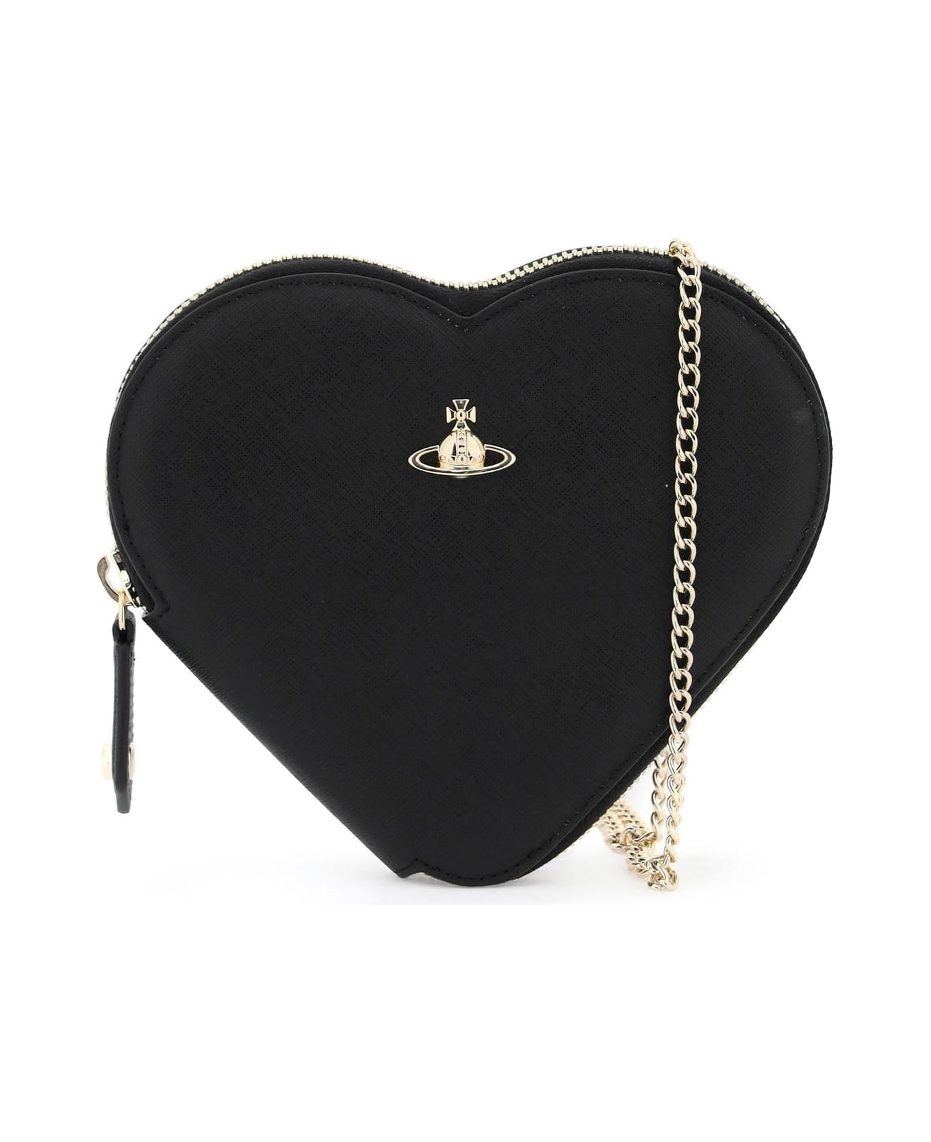 This Vivienne Westwood crossbody bag is made of saffiano leather and features a heart-shaped design. The iconic Orb in platinum metal finish, zip closure, fabric interior, and removable chain strap add to its charm. Composition: 100% cow leather