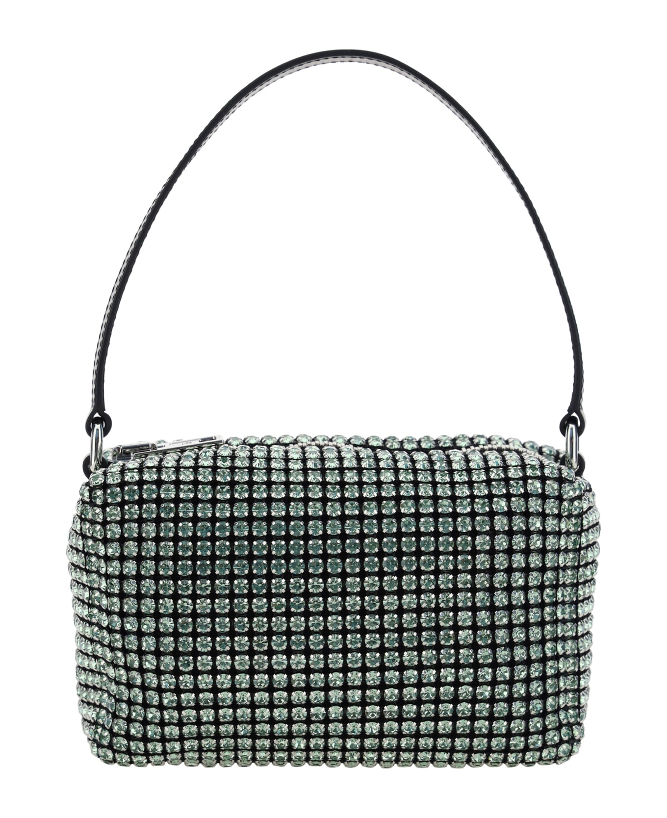 Calfskin heiress medium shoulder bag by alexander wang, crystal mesh design, single leather handle, top zipper closure, logo-embossed press-studded patch on inside, iconic contrasting brand logo on handle.