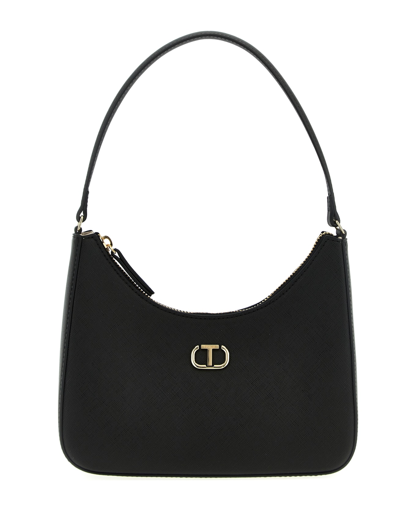 'Hobo Oval T' shoulder bag in leather with Saffiano print, zip closure, front logo, fixed handle.