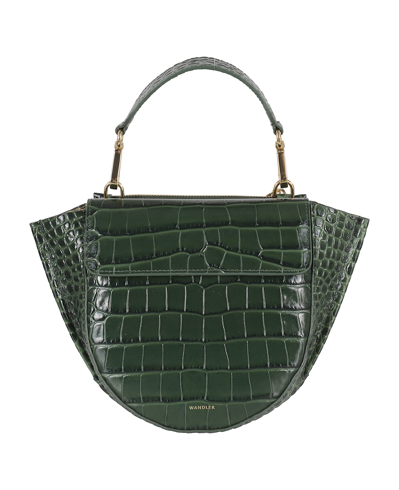 Hortensia Mini bag -Wandler -Color olive -Crocodile print -One interior compartment -Handle -Adjustable and removable shoulder strap -Outer pocket -Flap closure with magnets -Dimensions: Width 25cm x Height 20cm x Depth 5cm