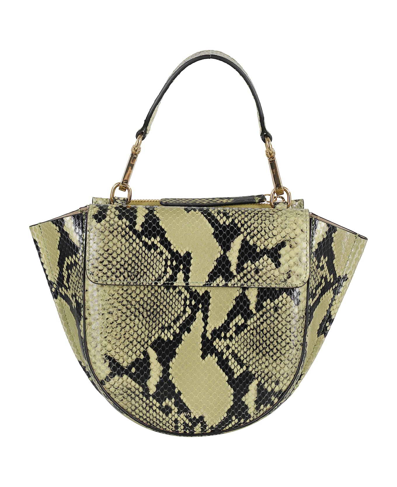 Hortensia Mini bag -Wandler -Lime color -Python print -Single interior compartment -Handle -Adjustable and removable shoulder strap -Outer pocket -Flap closure with magnets -Dimensions: Width 25cm x Height 20cm x Depth 5cm