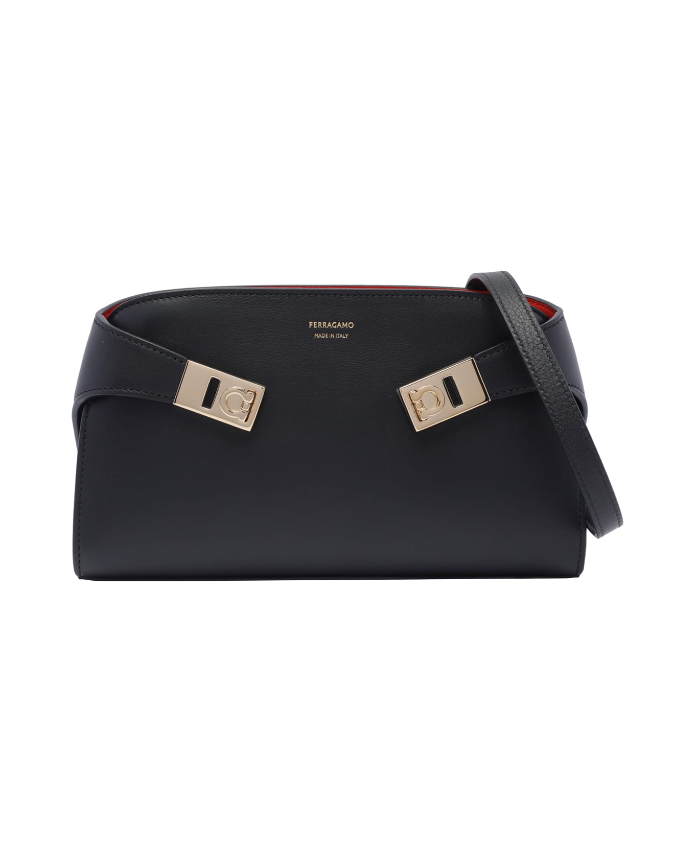 Ferragamo black Hug crossbody bag, zip closure, 2 inner slots, adaptable and removable strap, frontal mini logo