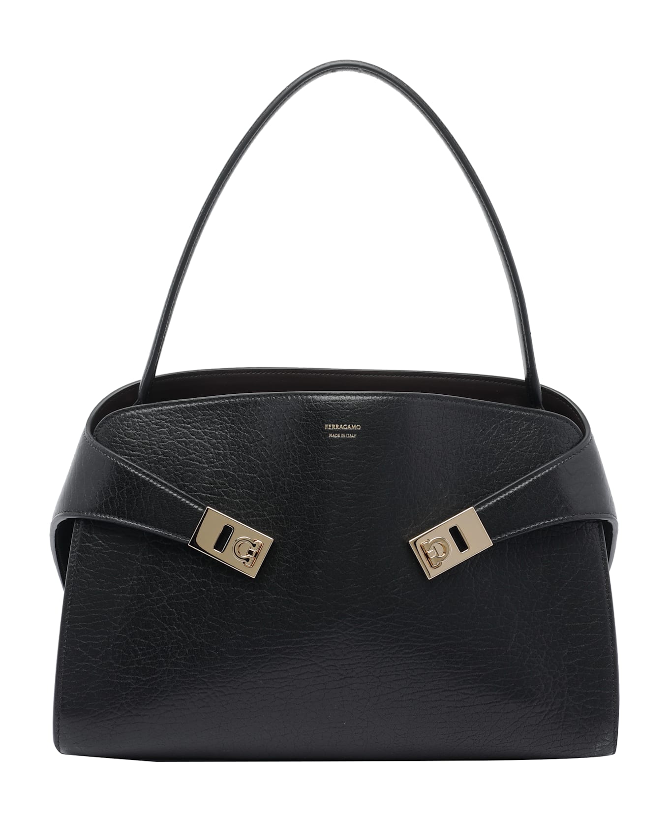Ferragamo black Hug shoulder bag, magnetic closure, 2 sections, 1 shoulder strap, removable and adaptable strap, leather model Composition: 100% Calf Leather