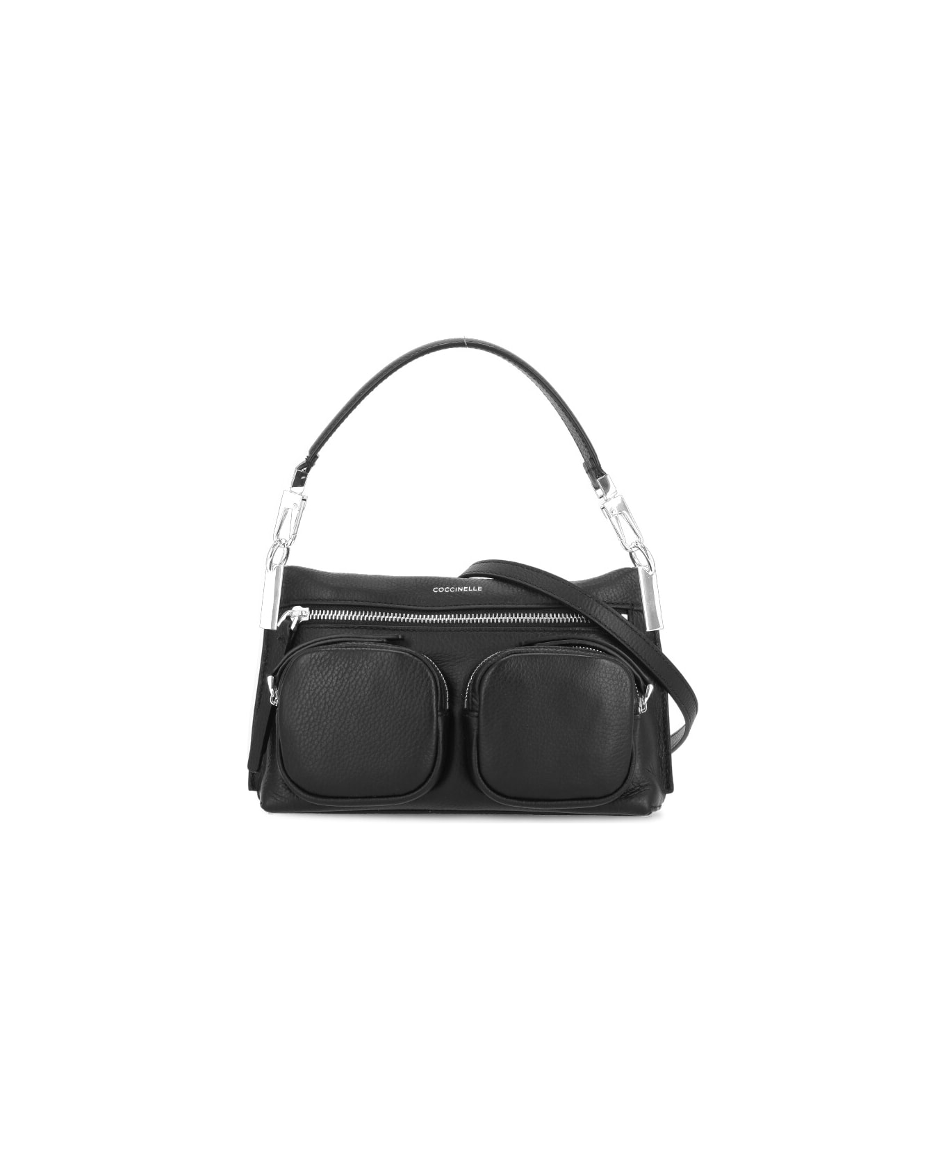 - Black Coccinelle pebbled leather shoulder bag for woman - Front zip fastening - One internal pocket - One rear zip compartment - Two front compartments with zip