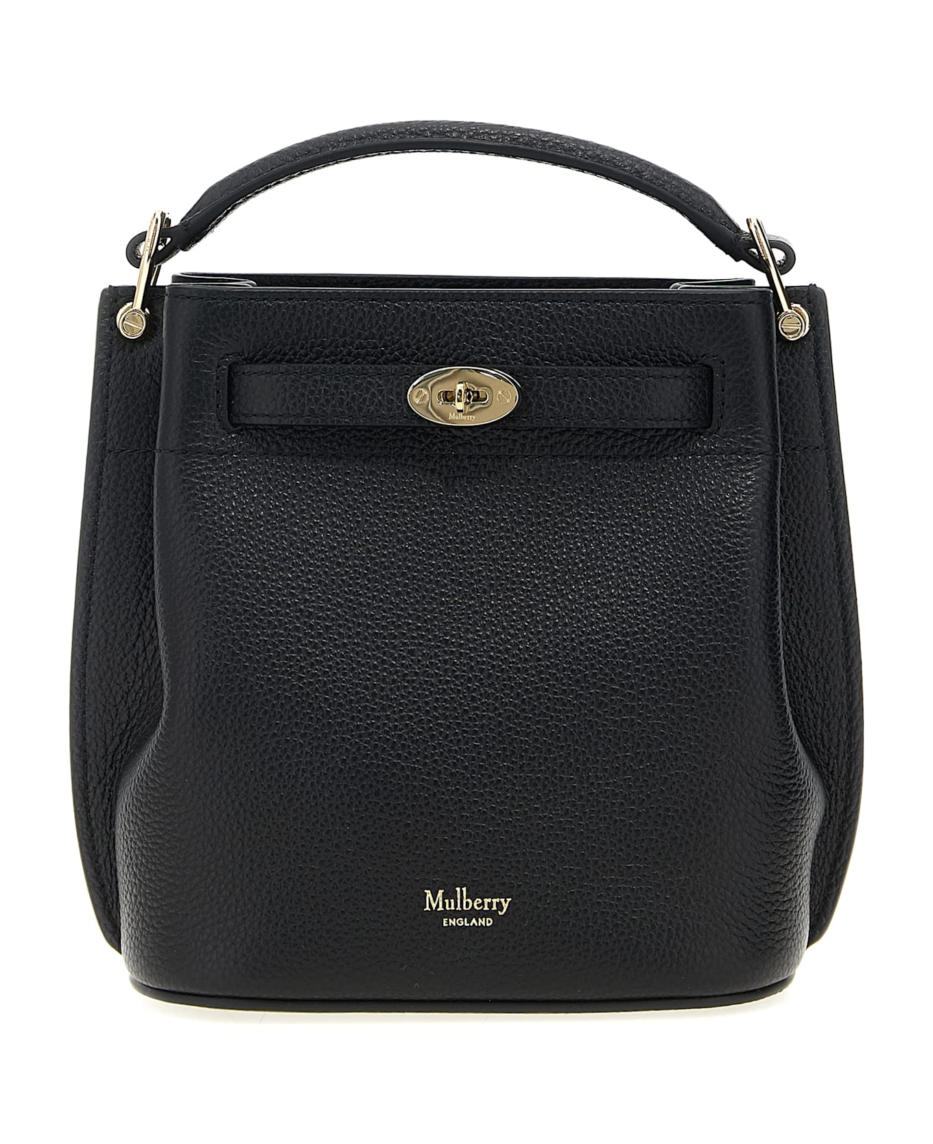 'Islington' mini bucket bag in hammered leather, front embossed logo, belt closure with Postman's Metal lock, fixed handle, adjustable shoulder strap, metal details.