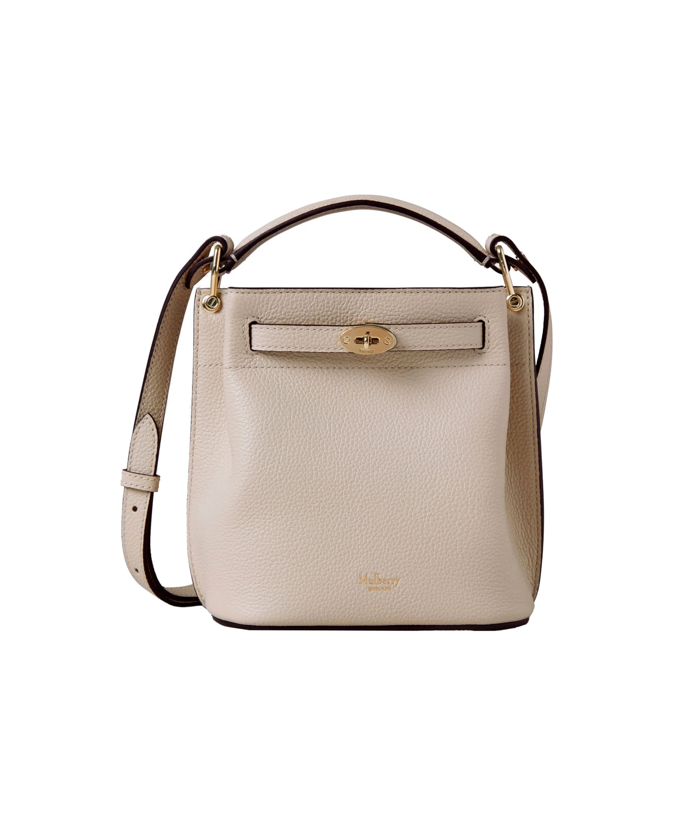 'islington Mini' Beige Bucket Bag With Turn-lock Closure And Logo In Textured Leather Woman