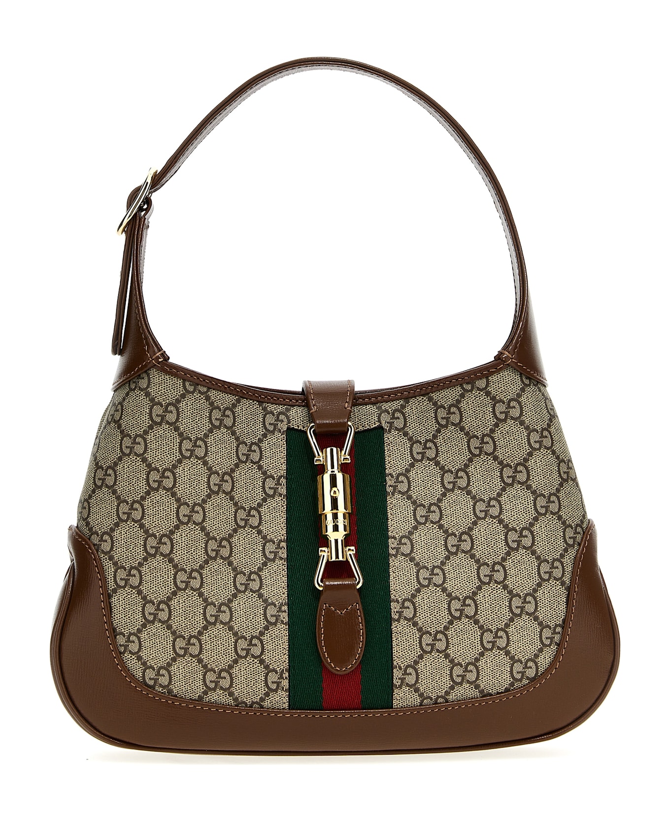 Small 'Jackie 1961' shoulder bag in GG Supreme fabric with leather details, web ribbon, piston closure, adjustable handle, adjustable and removable leather shoulder strap. Composition: