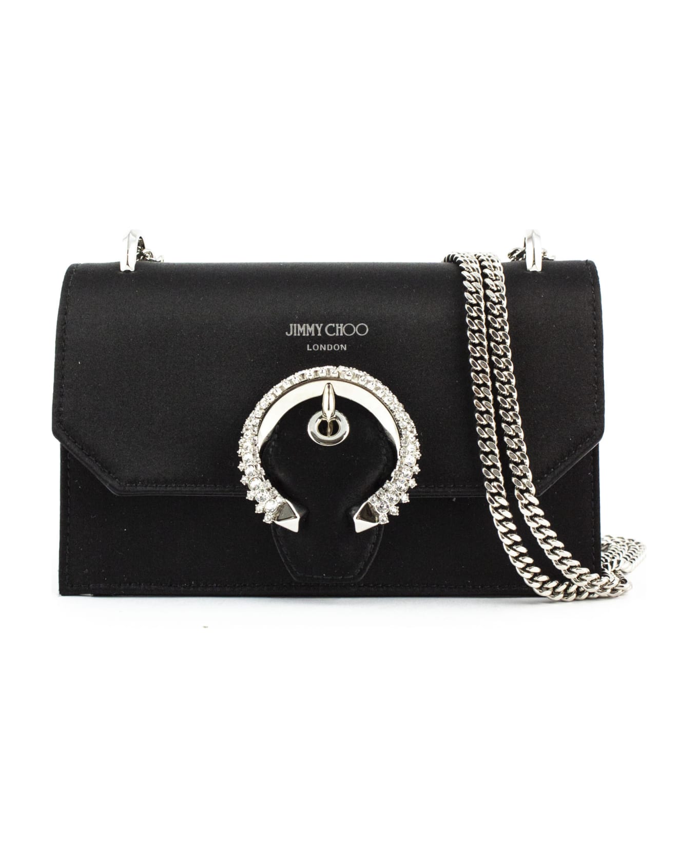 Paris Mini Bag In Black Suede With A Crossbody Long Chain Strap, A Snap Closure And Encrusted Crystal Buckle, Measures: W17 X H11 X D7 Cm