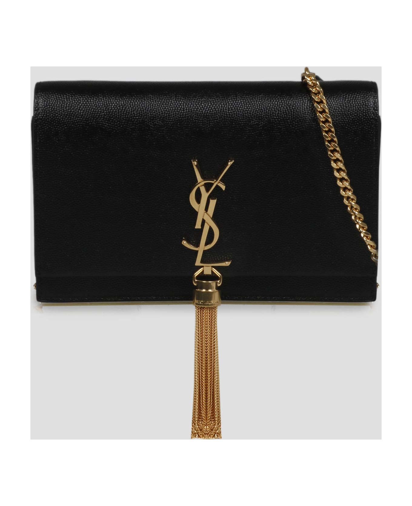 Kate clutch by Saint Laurent, in grained leather with YSL Monogram and tassel. - Gold metal hardware