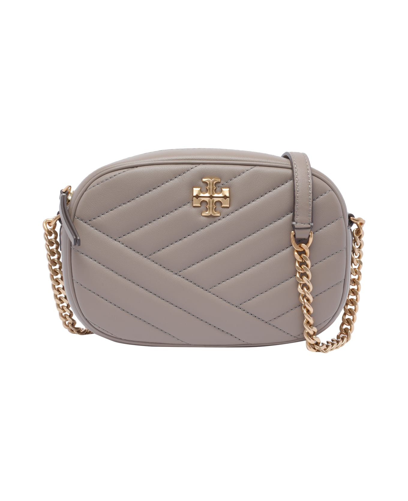 Tory Burch gray heron Kira Chevron crossbody bag, zip closure, inner zip pocket and one open pocket, adjustable shoulder strap, logo on the front