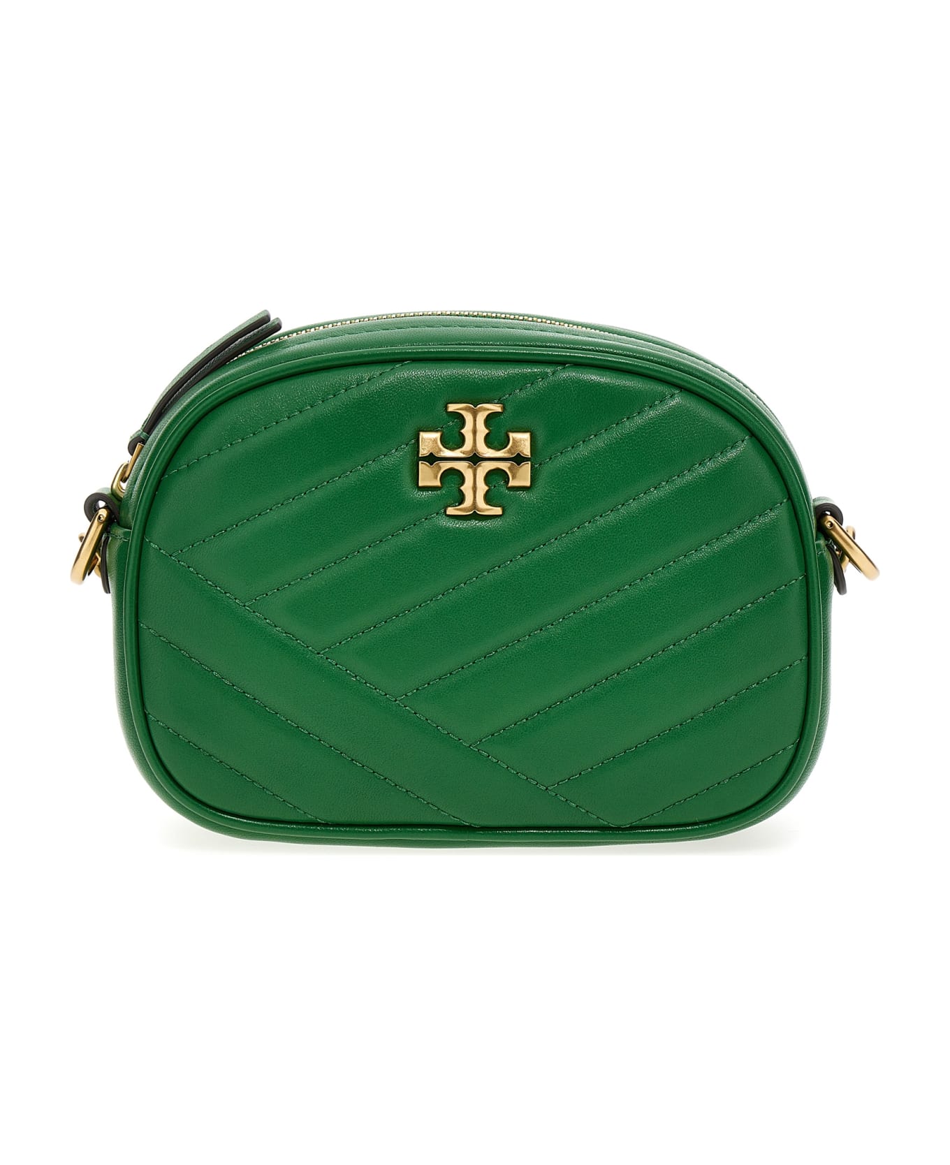 Kira Chevron Small Camera Bag' quilted leather crossbody bag with zip closure, front metal logo application, a chain shoulder strap with leather details.