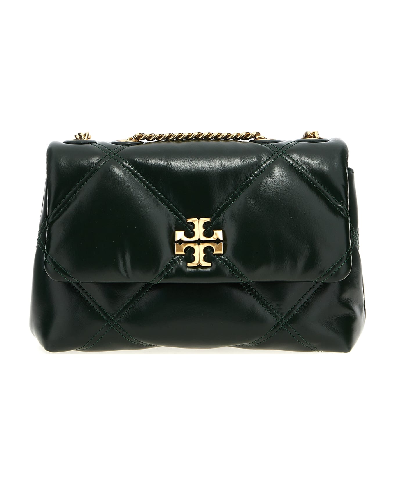 'Kira Diamond Quilt Small' quilted leather shoulder bag, magnetic flap closure with metal logo appliqué, chain handle.