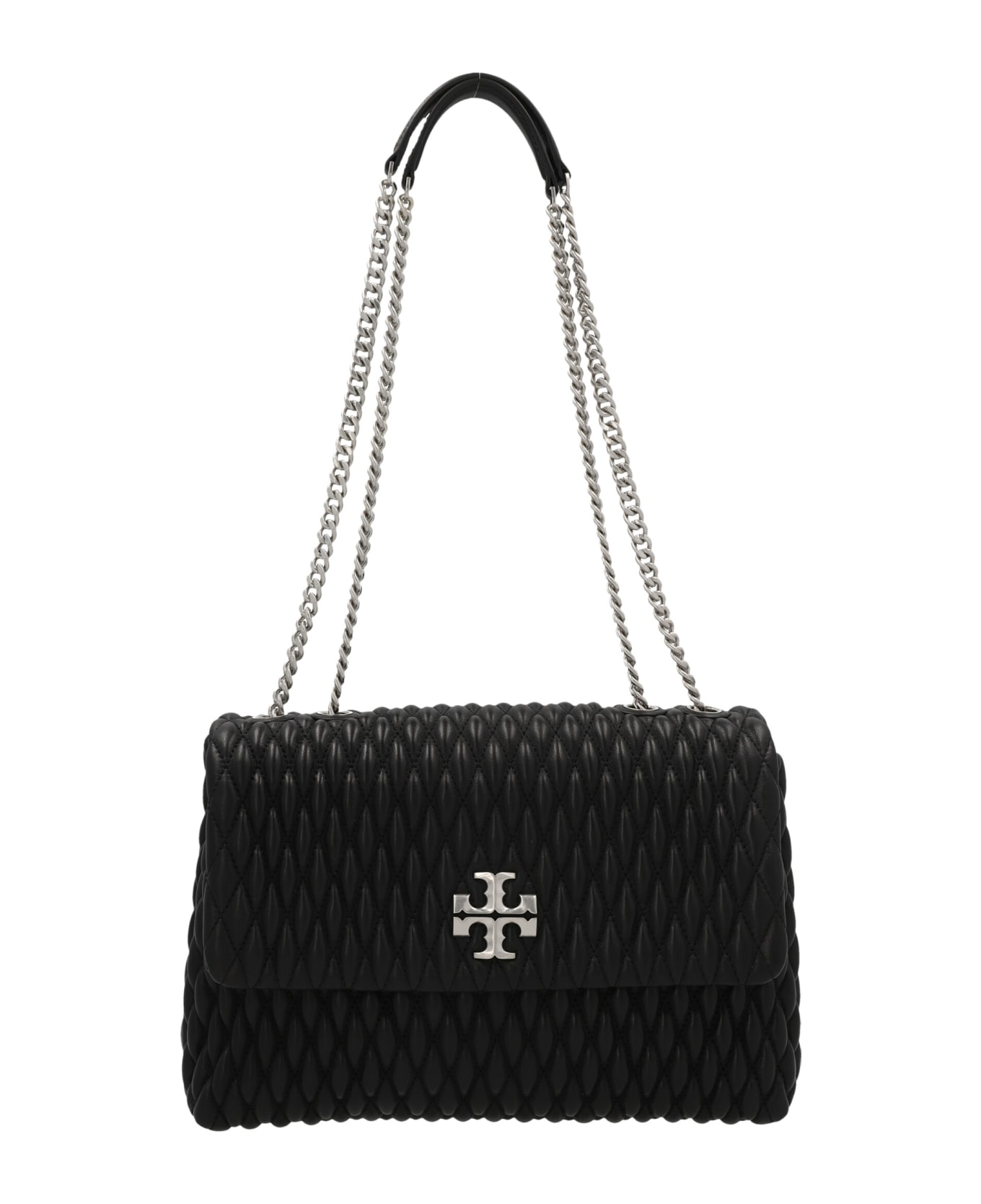 'Kira Ruched' quilted leather shoulder bag with flap closure with front metal logo detail and chain handle.
