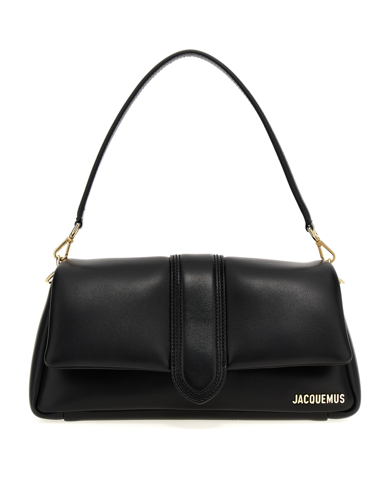 Padded leather Le Bambimou shoulder bag, magnetic flap closure, removable short handle, removable shoulder strap, front metal logo appliqué. Composition: 100% lamb leather (Ovis aries)