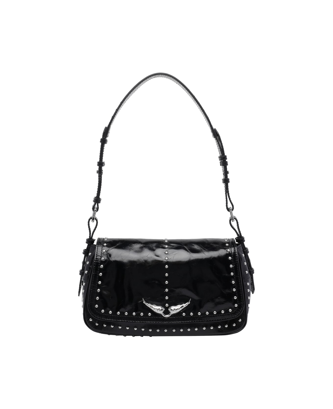 Zadig&Voltaire black Le Zouzou Vintage studs shoulder bag, magnetic closure, inner zipped pocket, removable strap