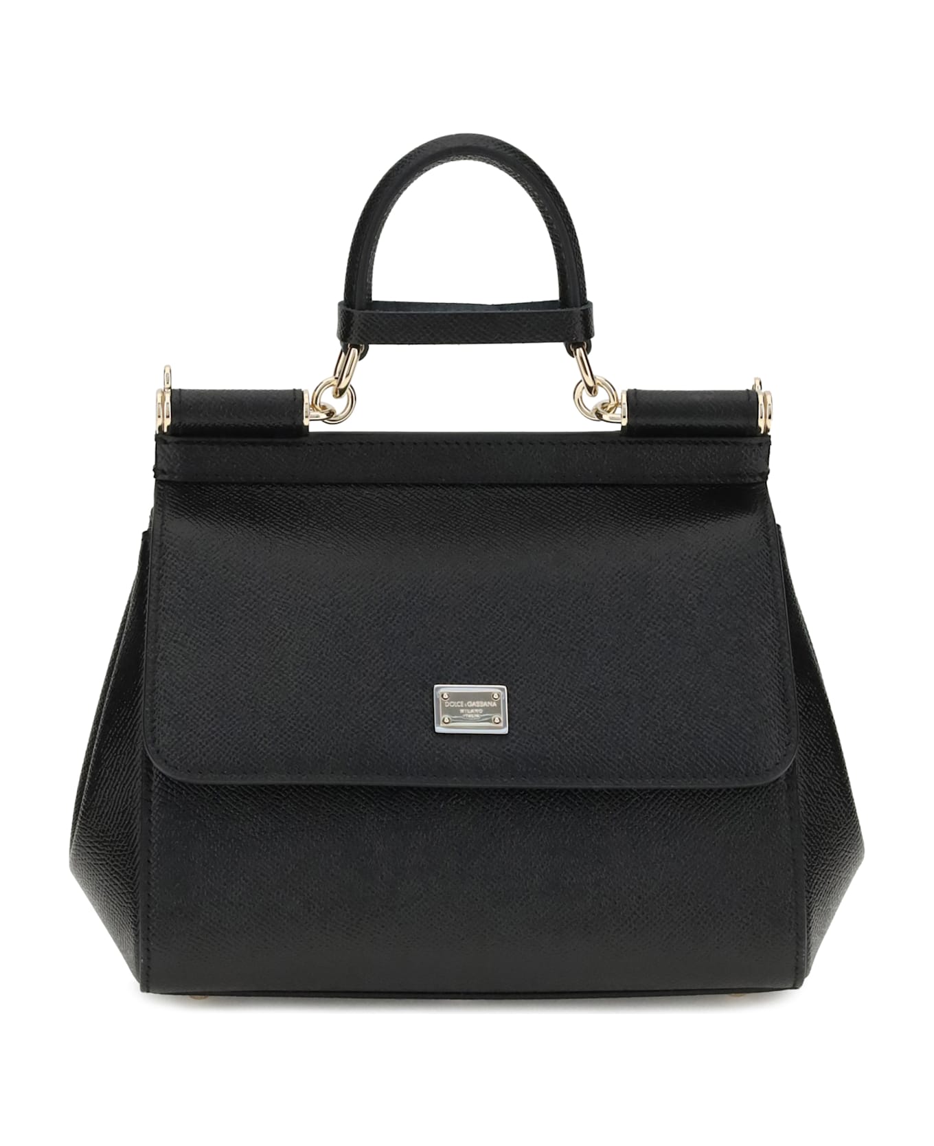 Dolce&gabbana's leather handbag embodies the house's timeless elegance and signature sophistication. featuring a rigid top handle, it offers sophisticated portability, while the flat, adjustable and removable shoulder strap adds practicality and versatility. the front flap closure with magnetic buttons provides security, while the applied logo hardware on the front adds a distinctive touch. the interior, with a single compartment, is designed to store essentials in style and order.