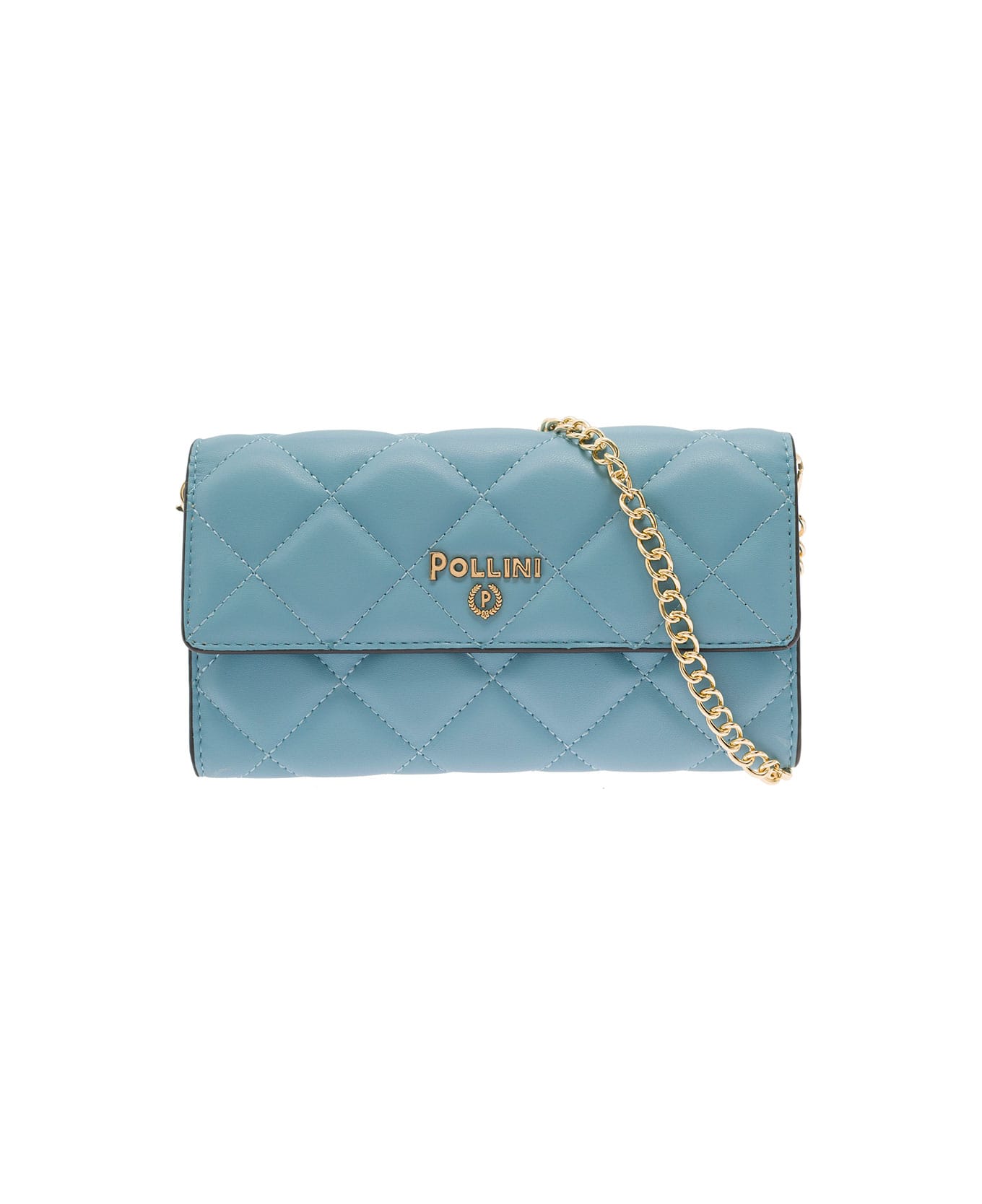 Wallet on chain Foldover top Front logo Chain link strap Quilted design Note compartment Card slots Light-blue Leather Dimensions: 20x11x3cm