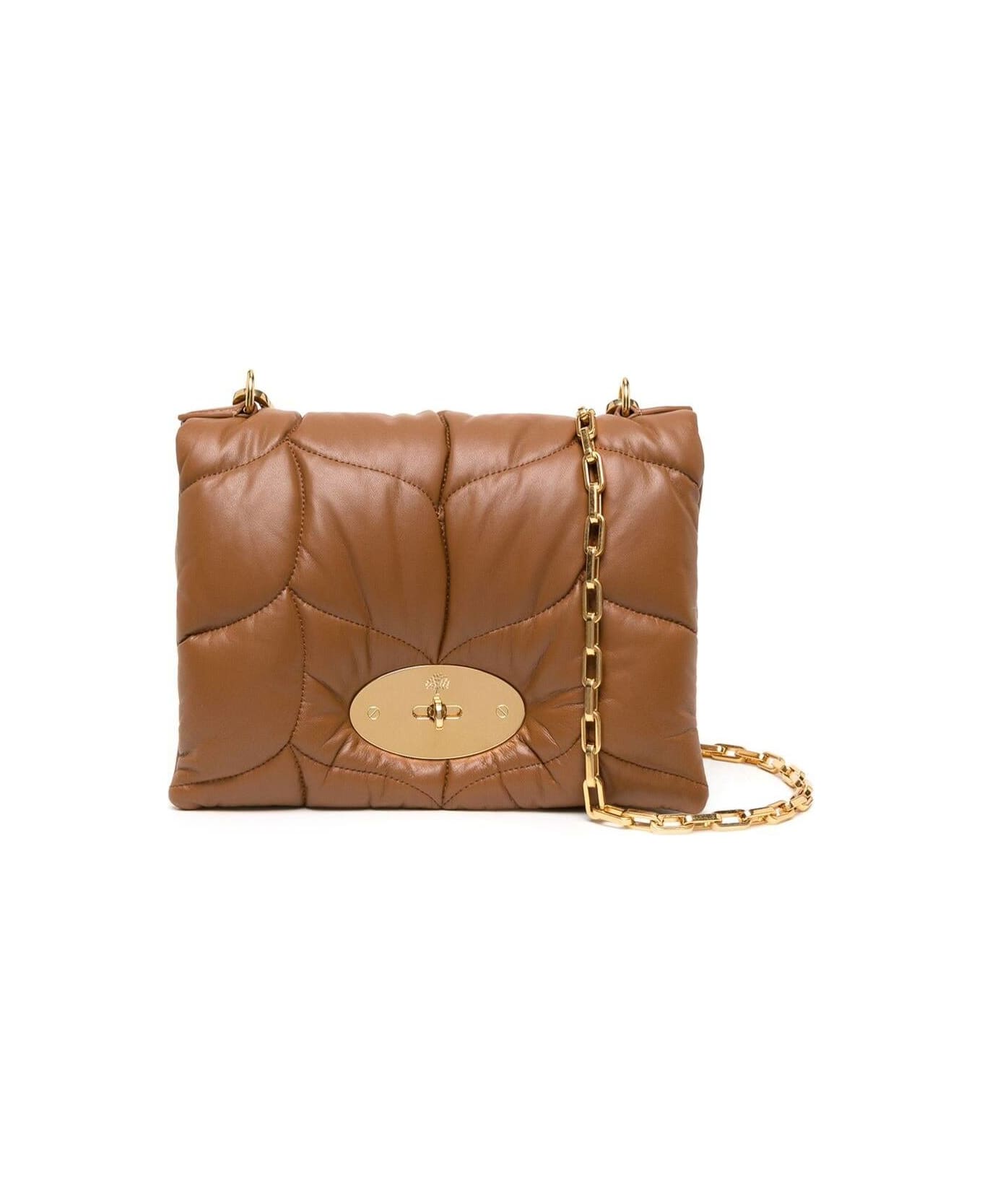 Cross-body bag Padded and quilted Sliding chain strap Twist lock closure Gold-colored metalware Front flap Tonal stitching Brown Leather Dimensions: 17x23x4 cm Shoulder strap: 110 cm