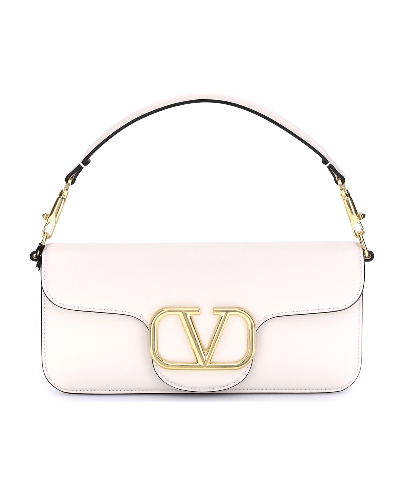 Valentino garavani's locò leather shoulder bag is an elegant and versatile accessory. it has a removable top handle via two snap hooks, a front magnetic flap closure and a three-dimensional plaque with the iconic embossed vlogo, plated in antiqued brass. the chain shoulder strap is removable, while the interior offers a single compartment and a slit pocket. the rigid design and quality materials make it a must-have of luxury and style.