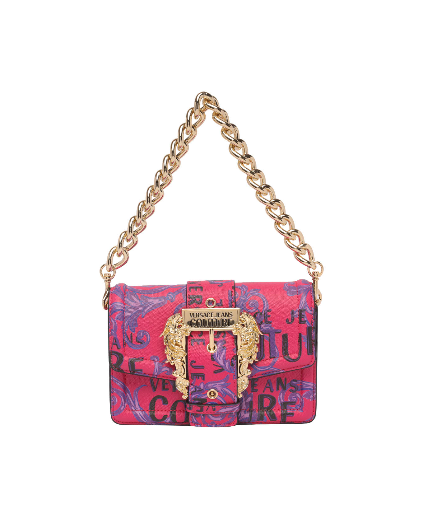 Versace Jeans Couture fuchsia logo couture shoulder bag, magentic closure, inner open pocket, chain removable strap