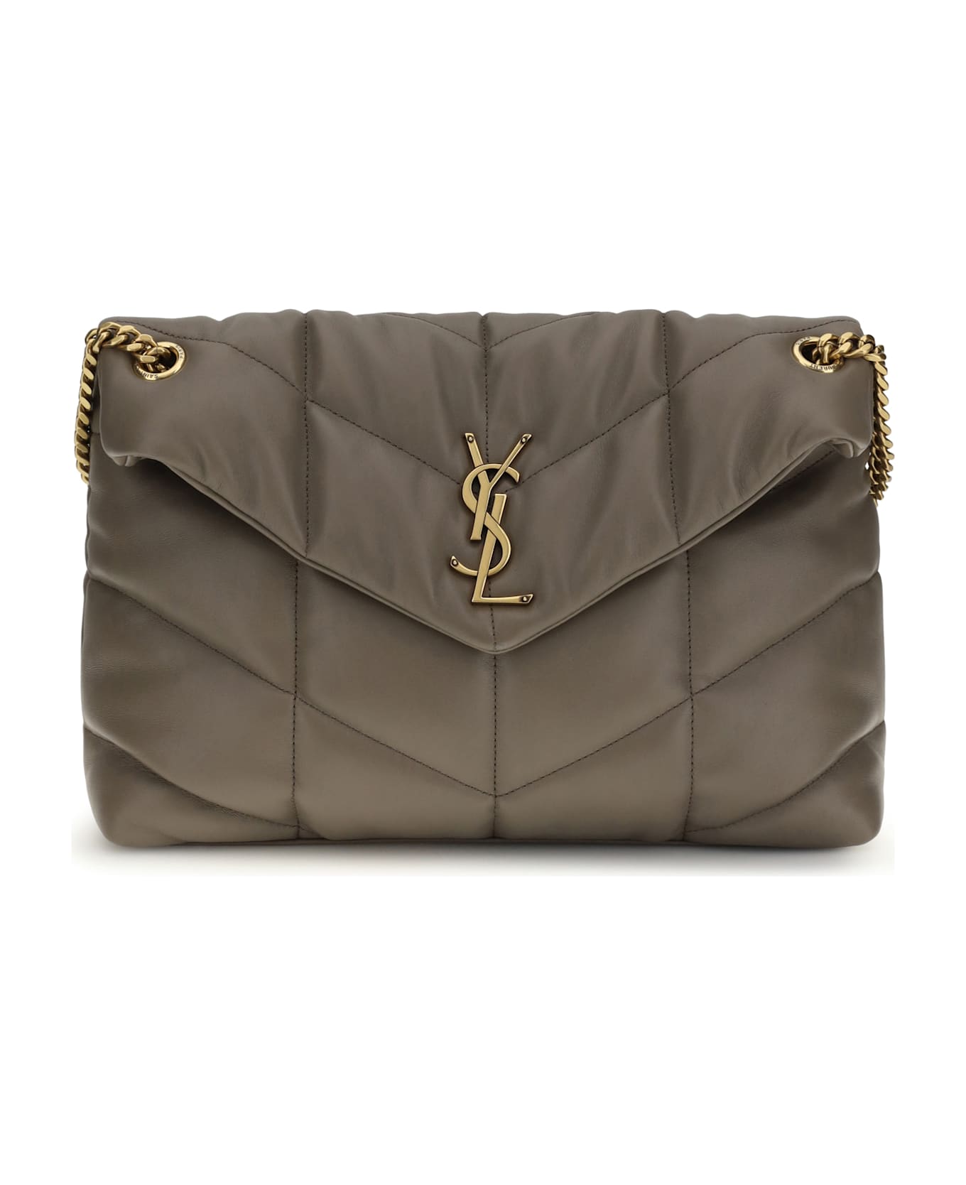 The loulou medium leather shoulder bag by saint laurent combines elegance and practicality in an iconic design. crafted from padded and quilted leather, it features a front plaque with gold-plated ysl logo and a flap with magnetic closure for easy and secure access. the double sliding shoulder strap with leather details allows for different carrying options, while the internal slip pocket offers additional functionality, making this bag a sophisticated and versatile accessory.