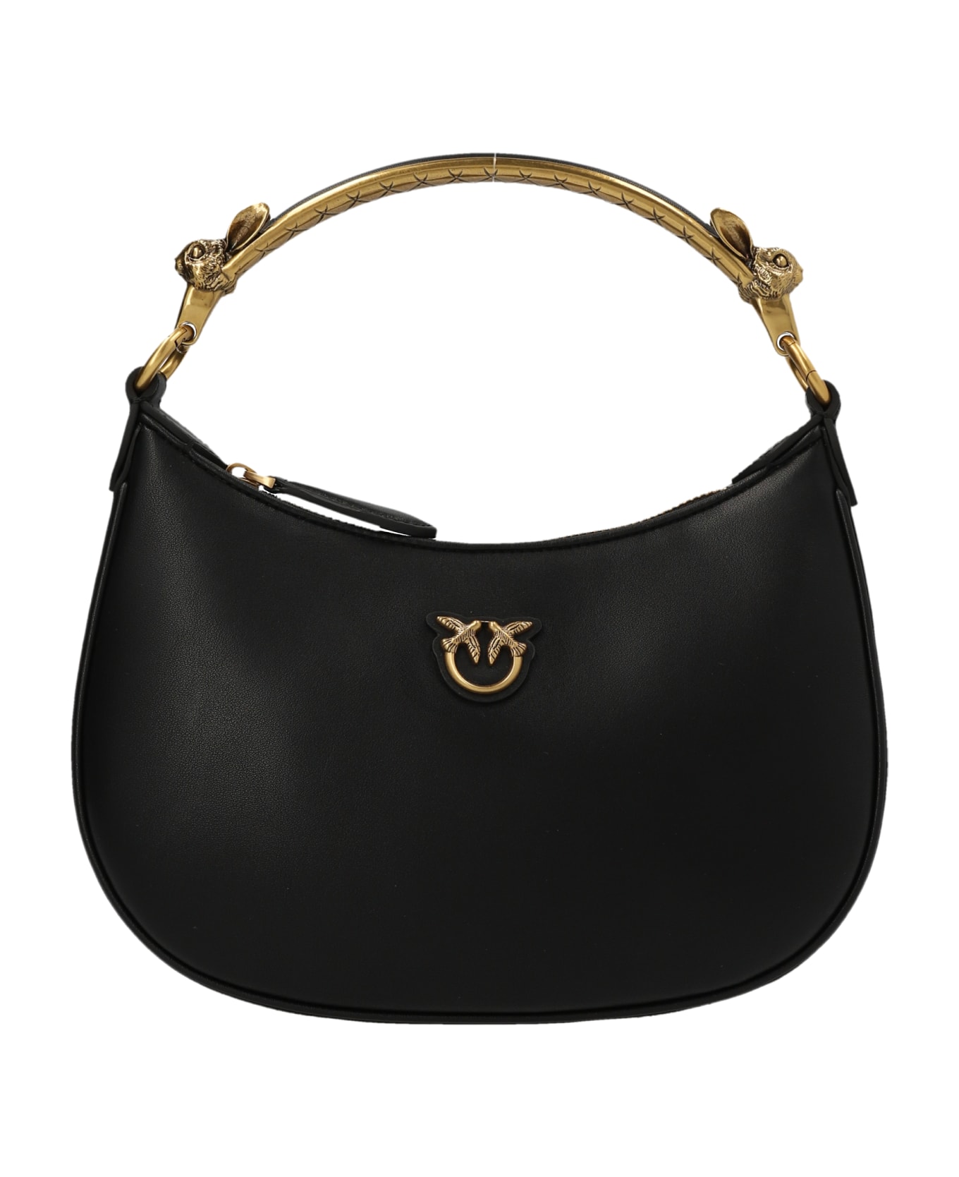 Love Mini Half Moon' leather crossbody bag with zip closure, top handle and adjustable and removable leather shoulder strap.