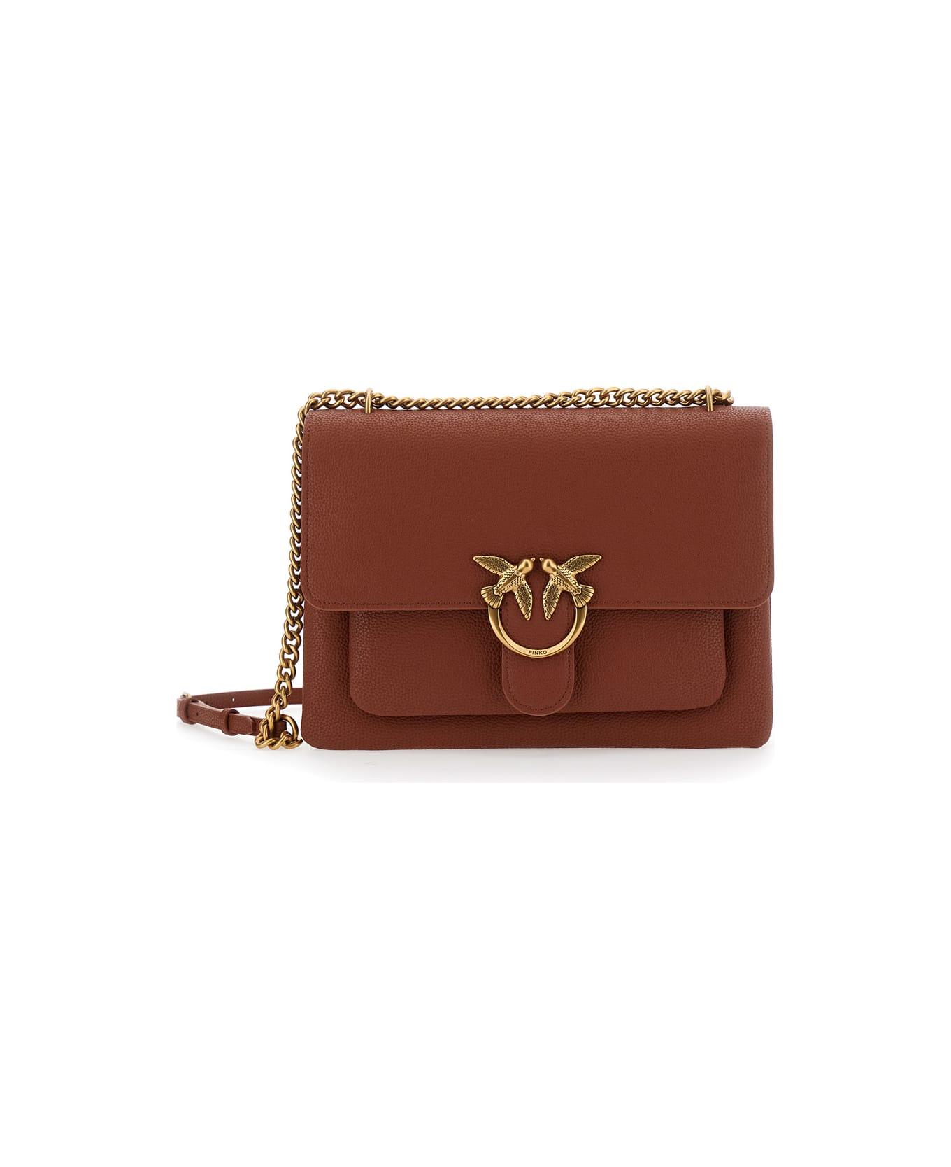 'love One' Brown Shoulder Bag With Love Birds Diamond Cut Logo On The Front In Hammered Leather Woman