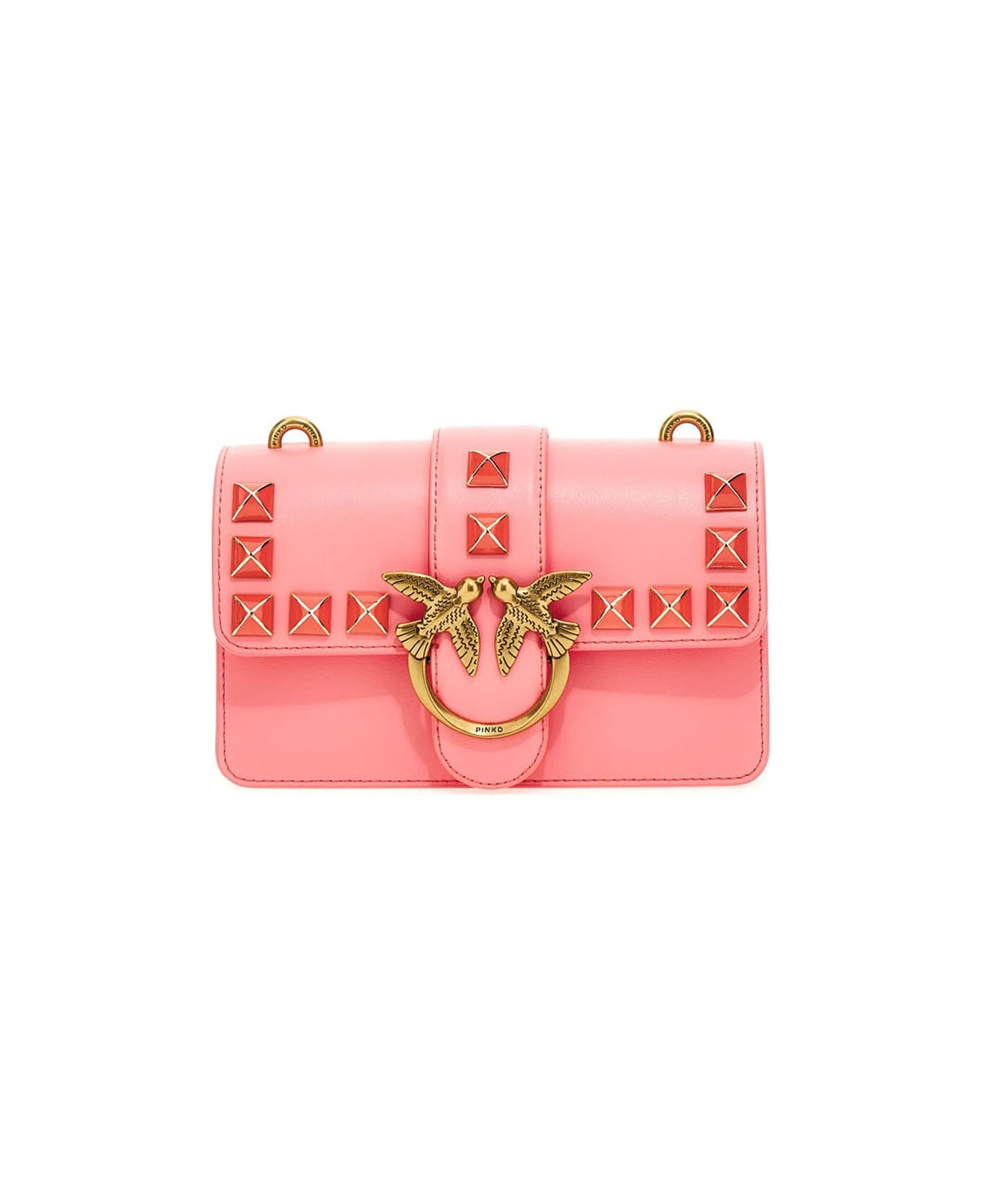 Love One Mini' leather crossbody bag with interlock closure, enamel stud applications, front metal logo, leather shoulder strap and a removable chain.
