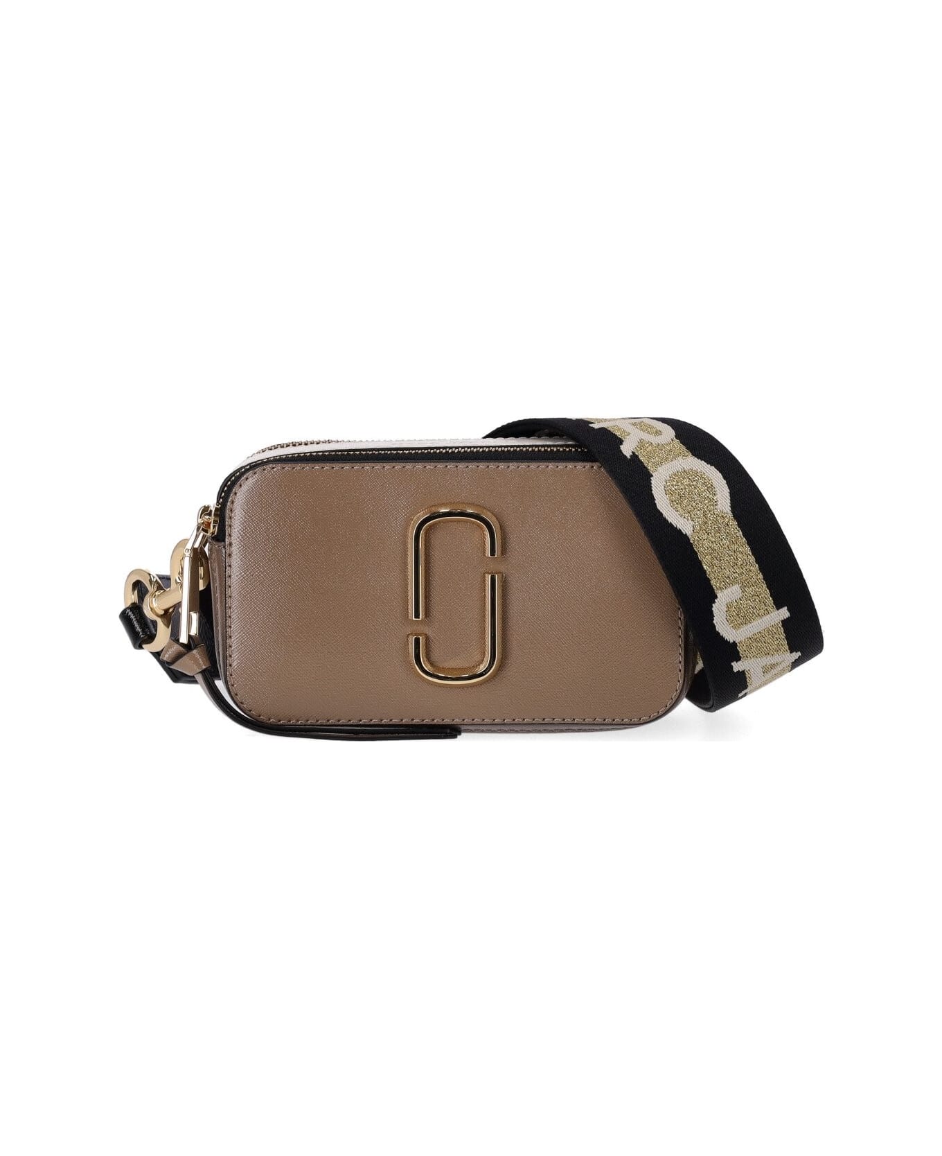 Marc Jacobs The Snapshot crossbody bag made of saffiano leather in shades of brown and grey, decorated with the iconic logo on the front and golden metal details. It has two compartments with zip, internal and external slip pockets, shoulder strap in fabric and lurex thread with logo. Measures 18x6x11 cm.