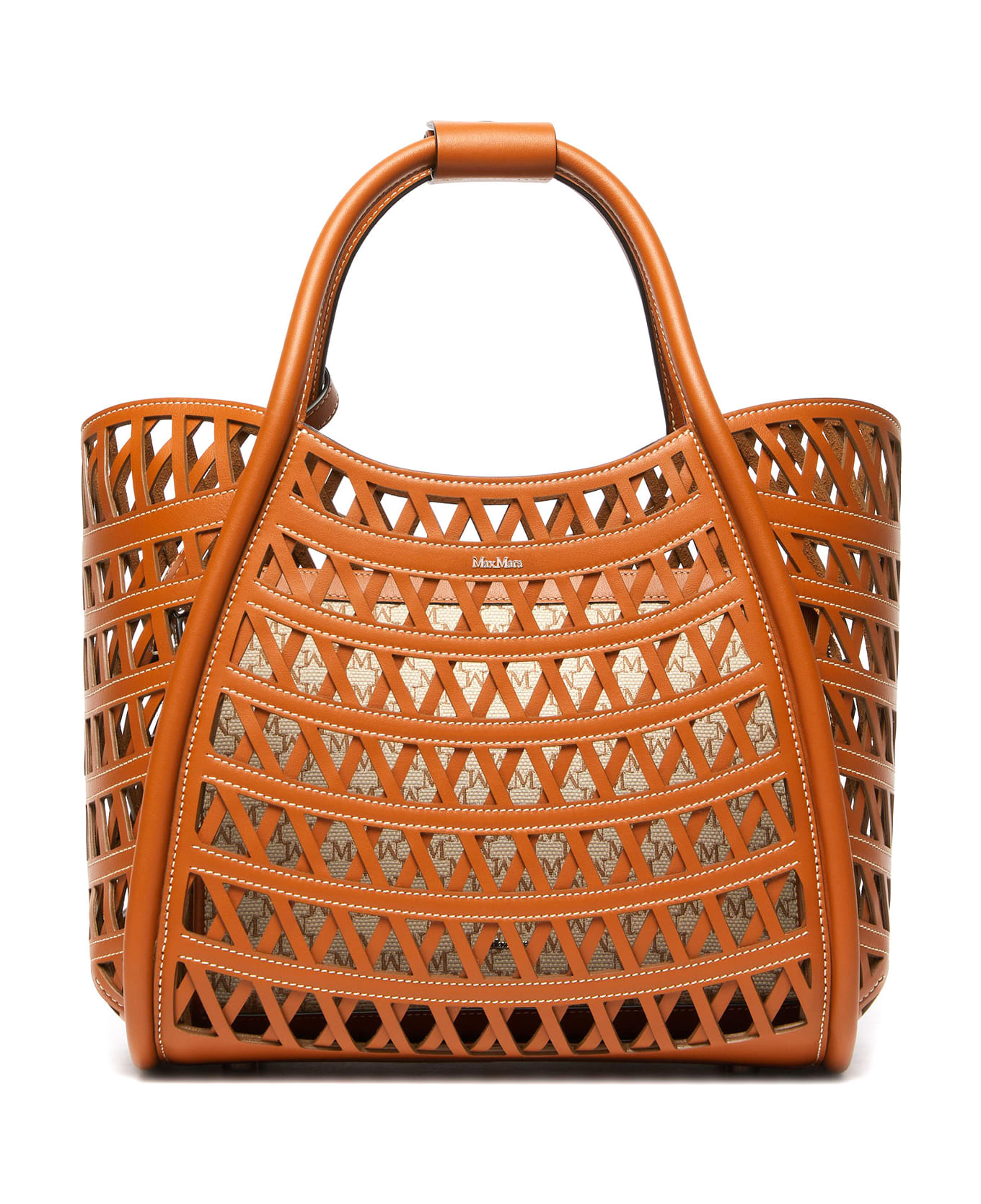 Marines Weaving Perforated Leather Handbag With Internal Clutch