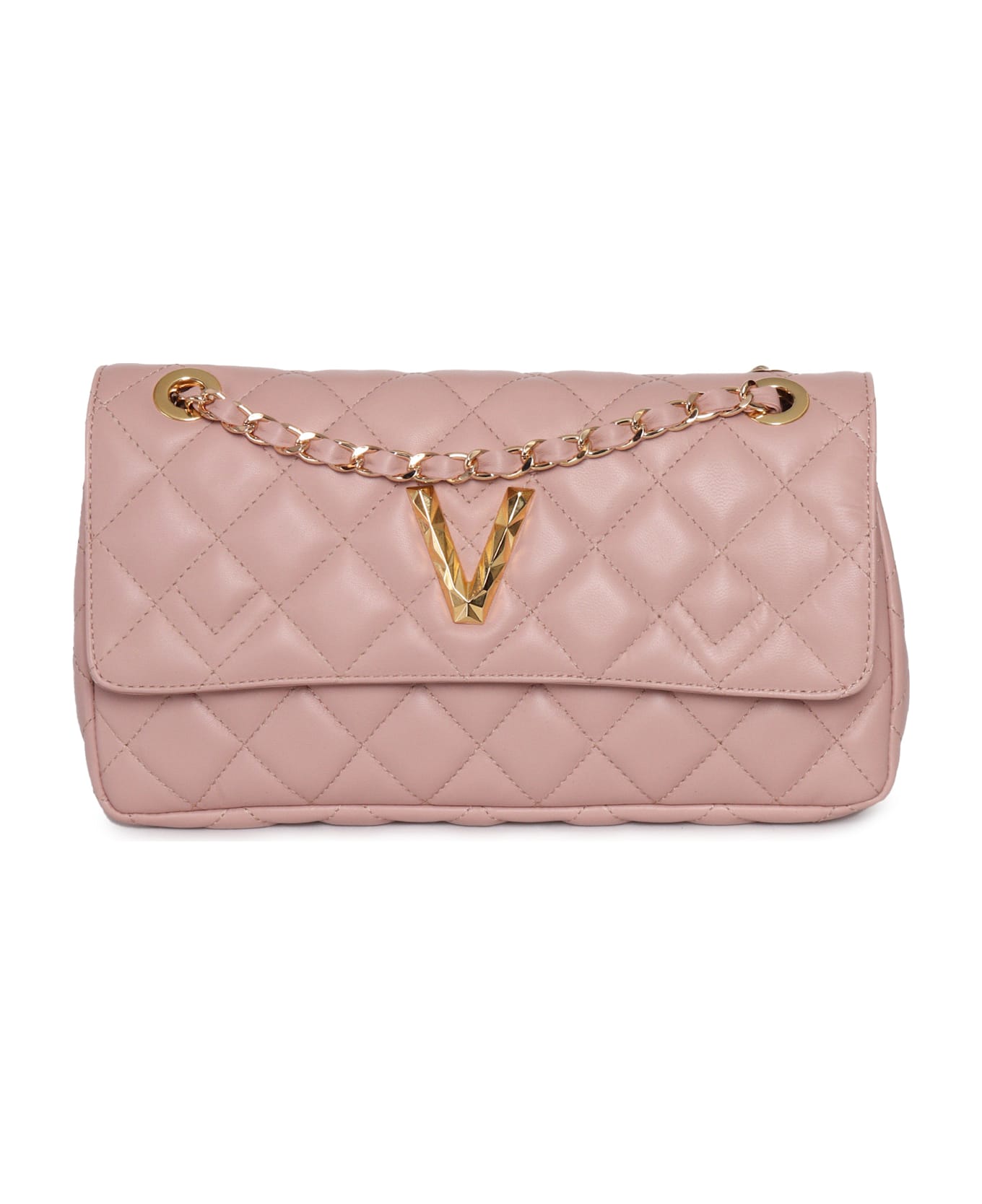 Small handbag Matalassé model with pink leather lines in via Roma 15. Characterized by golden metal details and luxury finishes, it is the perfect accessory to complete an elegant look with a decisive touch.