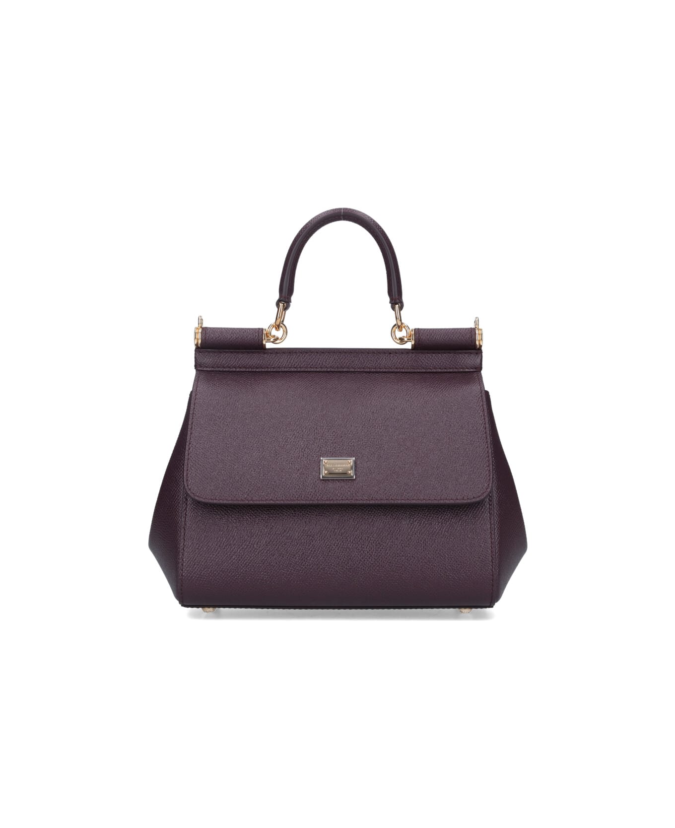 Dolce & Gabbana 'Sicily' medium handbag in red calf leather, burgundy shade, handle, adjustable and removable shoulder strap, magnetic flap closure, gold metal logo tag detail, inner flat pocket, inner zip pocket, main inner compartment.