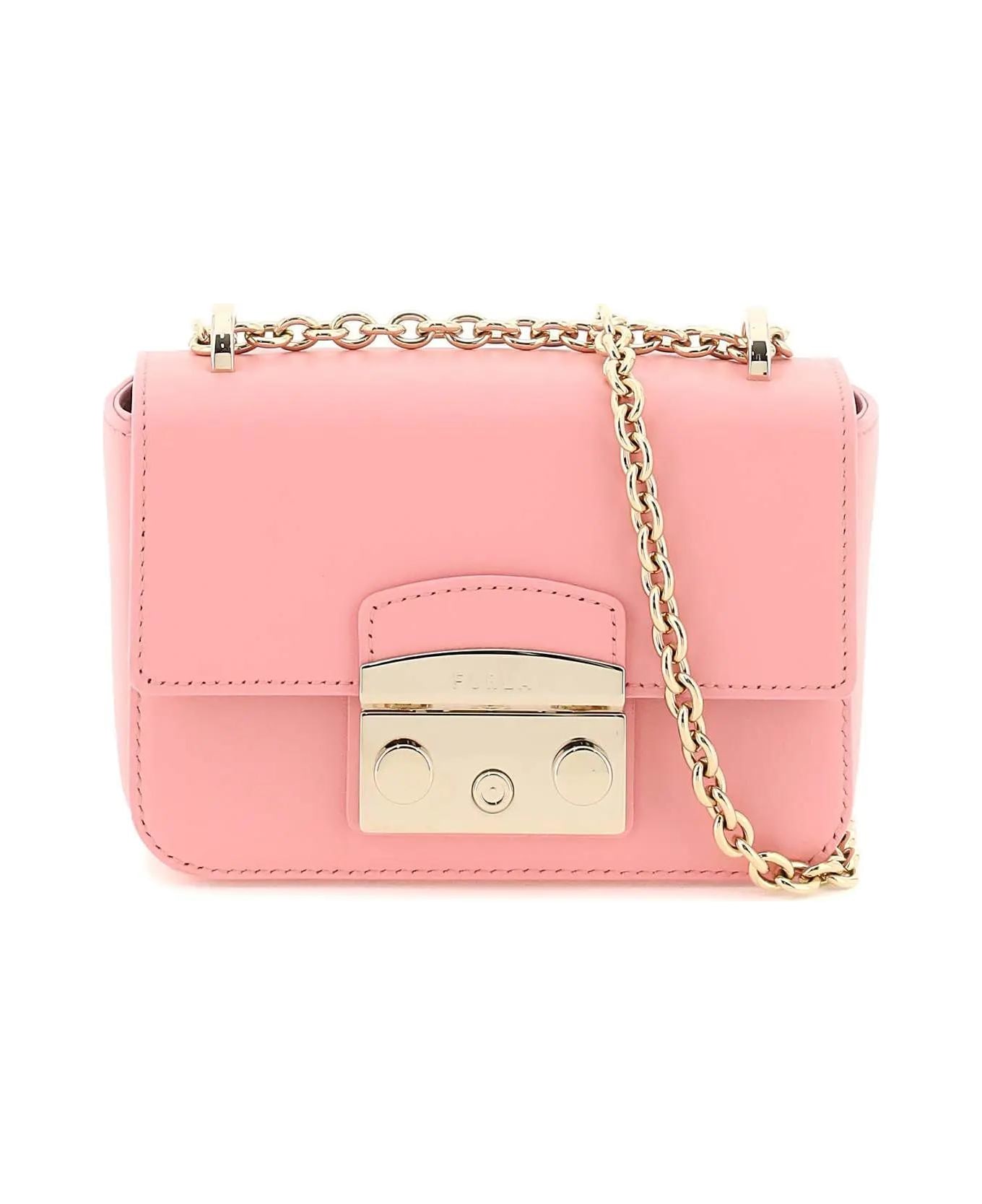 Furla Metropolis Mini bag in leather with a structured line with flap and snap closure. Adjustable chain shoulder strap, fabric-lined interior with a flat pocket and gold-tone metalware.