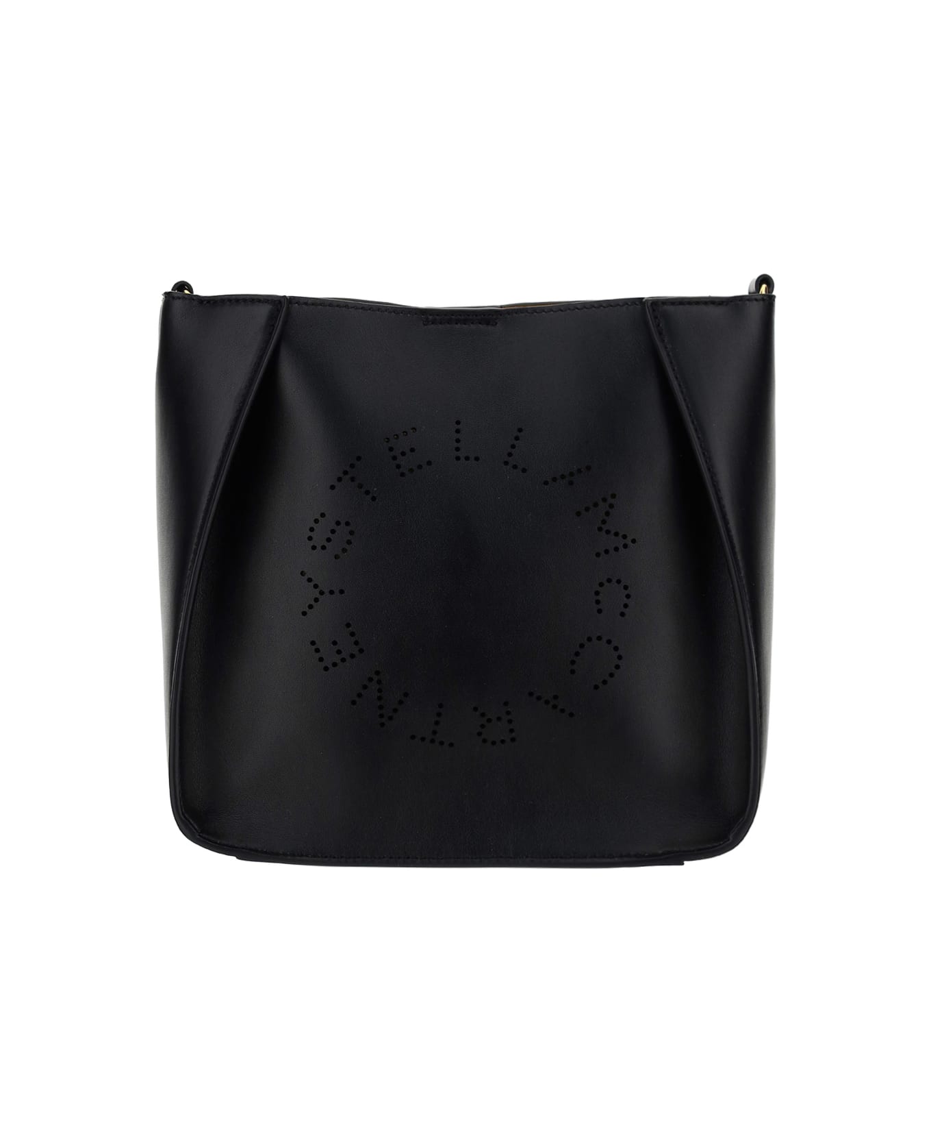 Mini crossbody logo bag by stella mccartney, magnetic button closure, cut out logo on front, removable shoulder strap, internal compartment. Composition: 56% % Polyurethane, 44% % Polyester