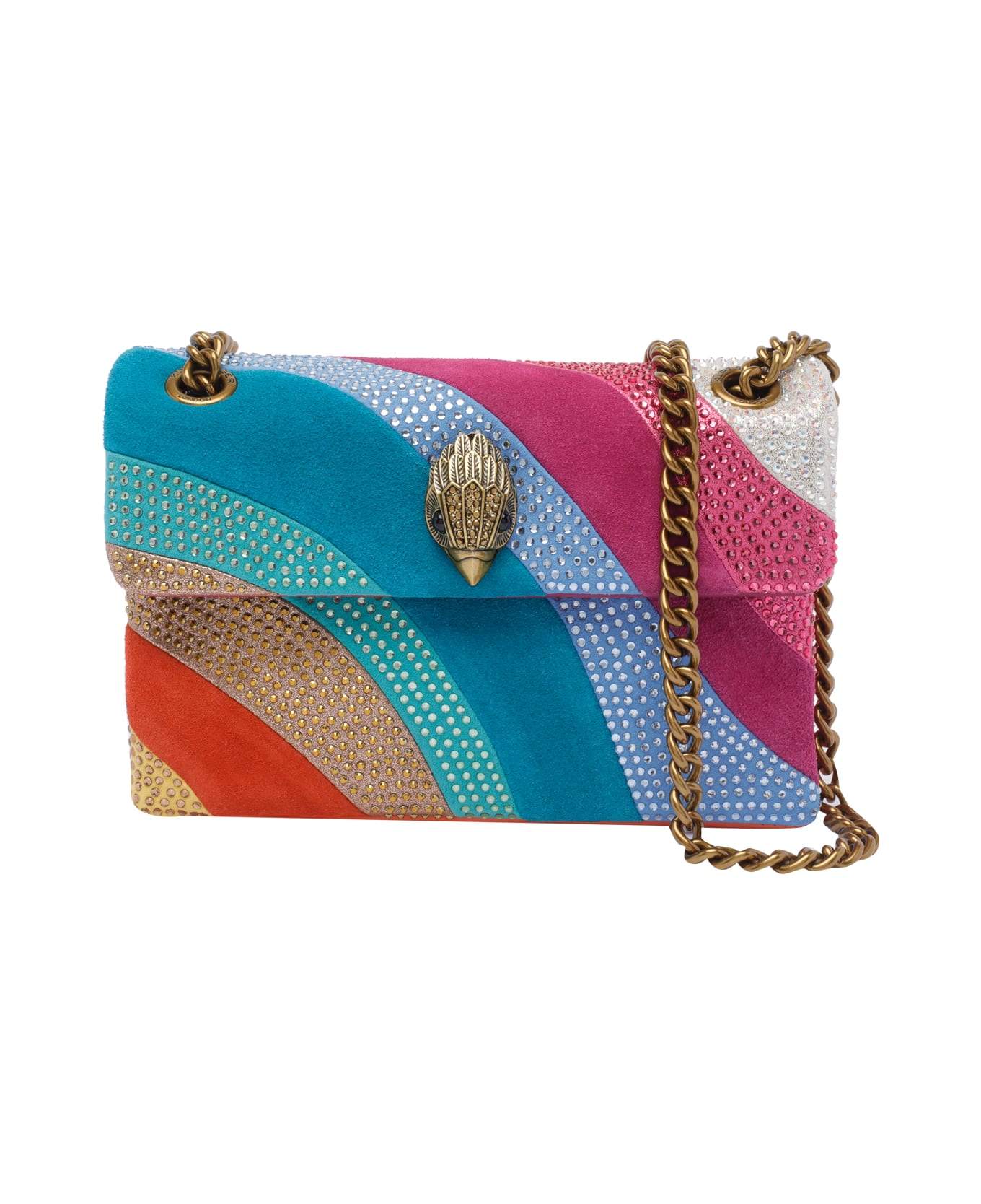 Kurt Geiger multicolor Mini Kensington crossbody bag, magnetic closure, adaptable sliding chain strap, strass detail, frontal logo Composition: 50% Calf Leather, 50% Polyester, 100% Crystal Glass