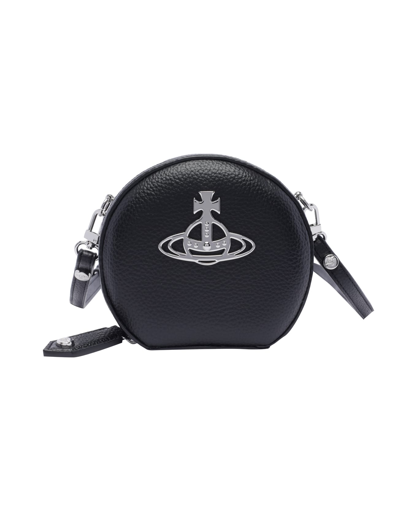 Vivienne Westwood black Mini round crossbody bag, zip closure, adaptable and removable strap, frontal logo Composition: 100% Calf Leather