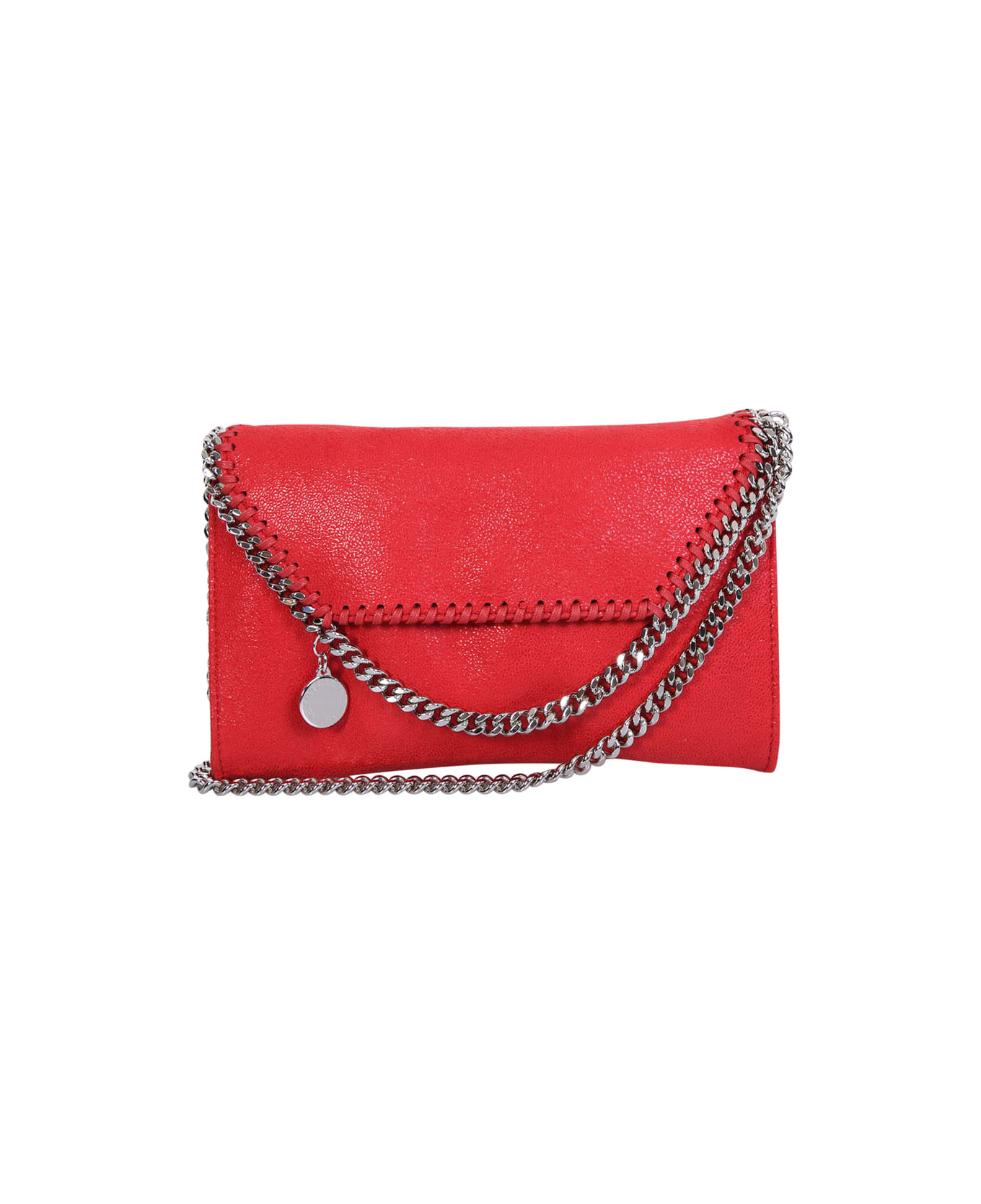 Chain link shoulder strap. Chain link trim. Logo charm. Internal slip pocket. Foldover top with magnetic fastening. Color: Red