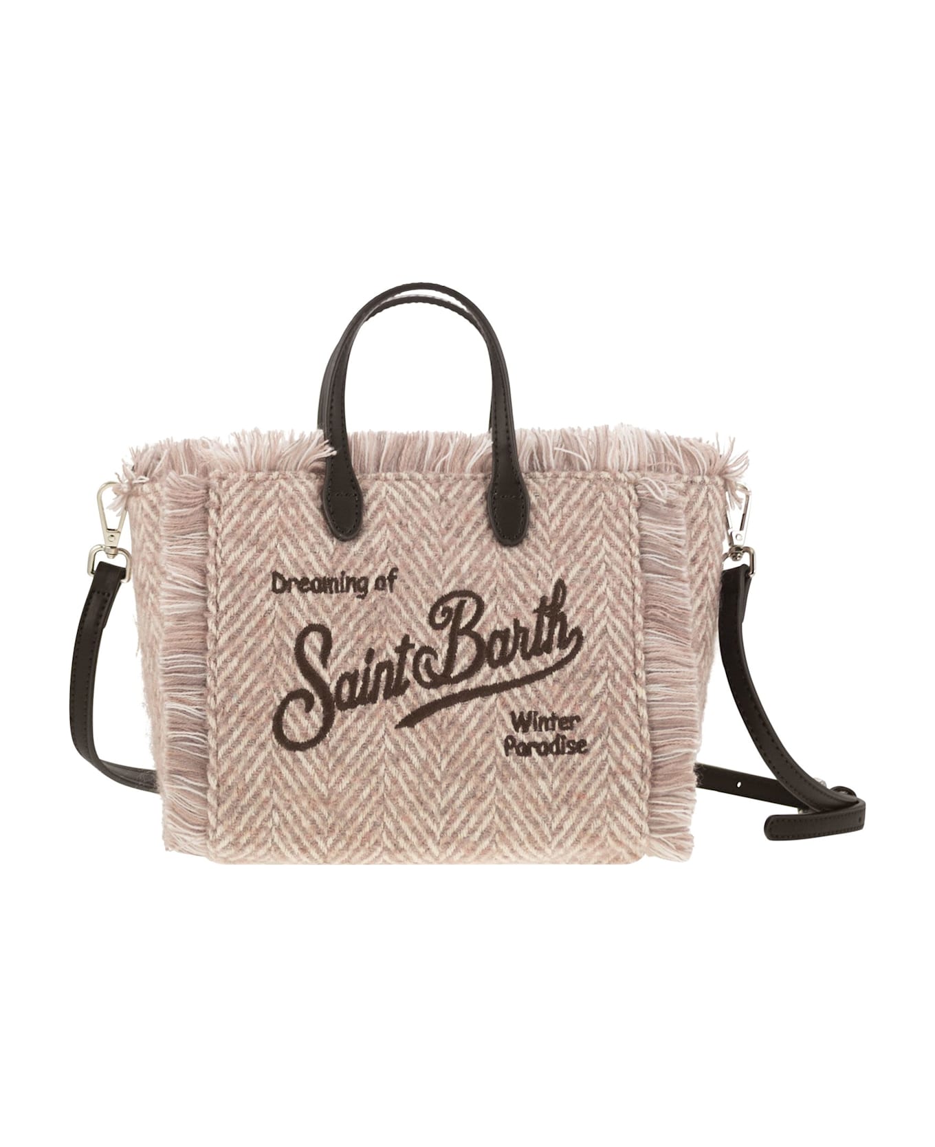 Finish off your outfits with the Mini Vanity bag with fringes, featuring a soft fabric with a herringbone pattern. Easy to carry thanks to the adjustable and removable shoulder strap. - Detachable shoulder strap - Zipper closure - Faux leather handles - Saint Barth embroidery DESIGNER ID: VAMI007 00513G Composition: 90% Polyester, 10% Wool 2 Fabric: 100% Polyester