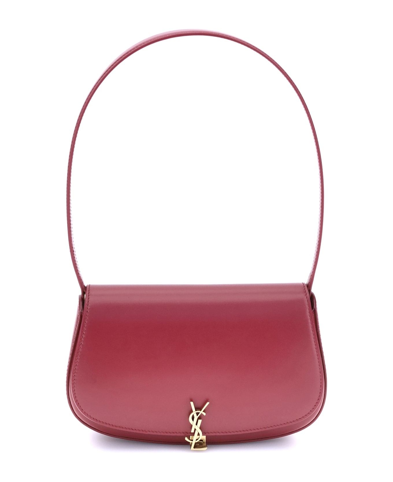 Calfskin mini voltaire shoulder bag by saint laurent, rigid moon design, front flap closure with magnetic button, three-dimensional plaque with iconic ysl brand logo applique on front, single interior compartment. Composition: 100% % Calf Leather Bos Taurus