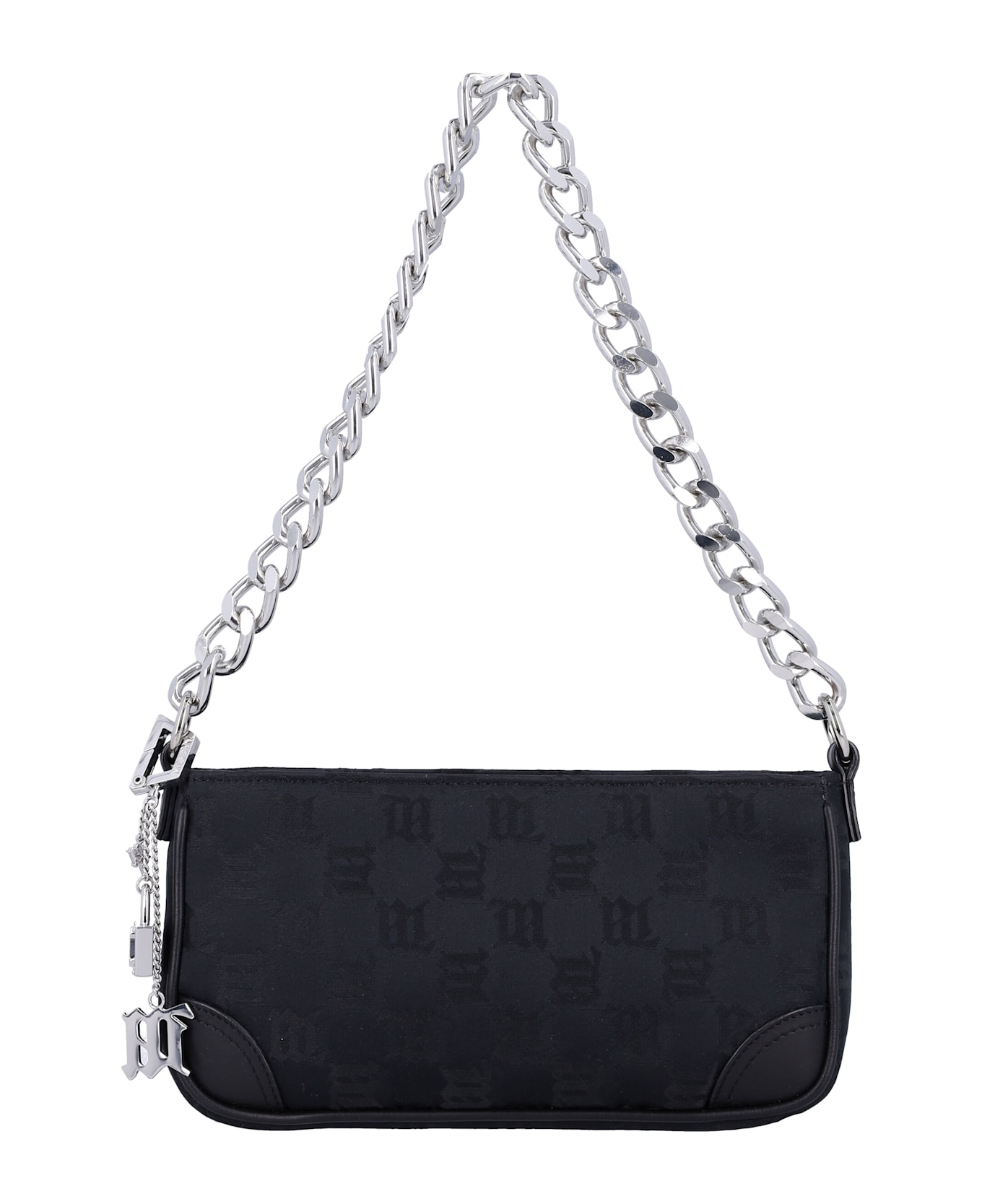 Nylon Monogram Chain Babe Bag By Misbhv. Featuring: Small Shoulder Bag Single Top Wide Chain Shoulder Strap Zipped Closure Main Compartment Jacquard Monogram Pattern Leather Details Height: 11,5cm Width: 22cm Depth: 5cm