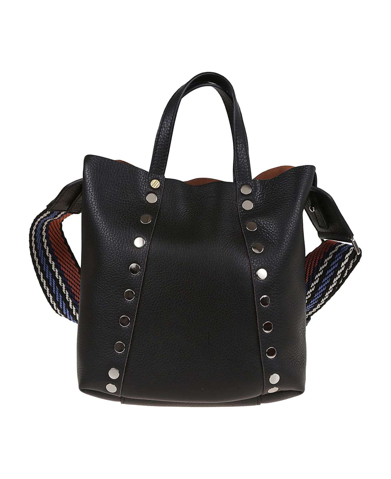 Moretta Daily S BY ZANELLATO bag. Button closure; top handles. Featuring studs respecting the same symmetry and fabric shoulder strap. Ideal to be worn with a casual and trendy outfit!