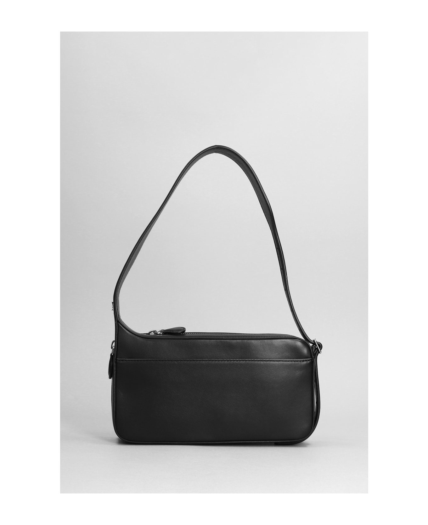 One racer baguette Hand bag in black leather, Height 120 mm, Width 225 mm, Width 225 mm, adjustable shoulder strap, zip closure, side zip, front pocket, silver metal logo, internal pocket, canvas lining, silver hardware, 100% leather, Made in Italy