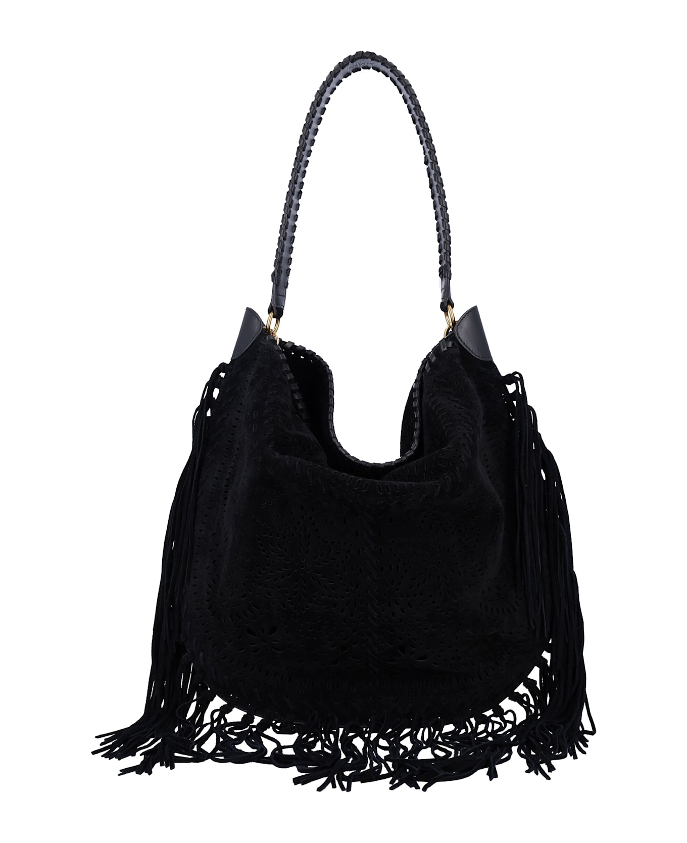 Oskan Hobo Fringe Bag By Isabel Marant. Featuring: Suede Fabric Laser-cut Details Long Fringe Detailing Braided Leather Top Handle Open-top Design Height: 39cm Width: 41 Cm