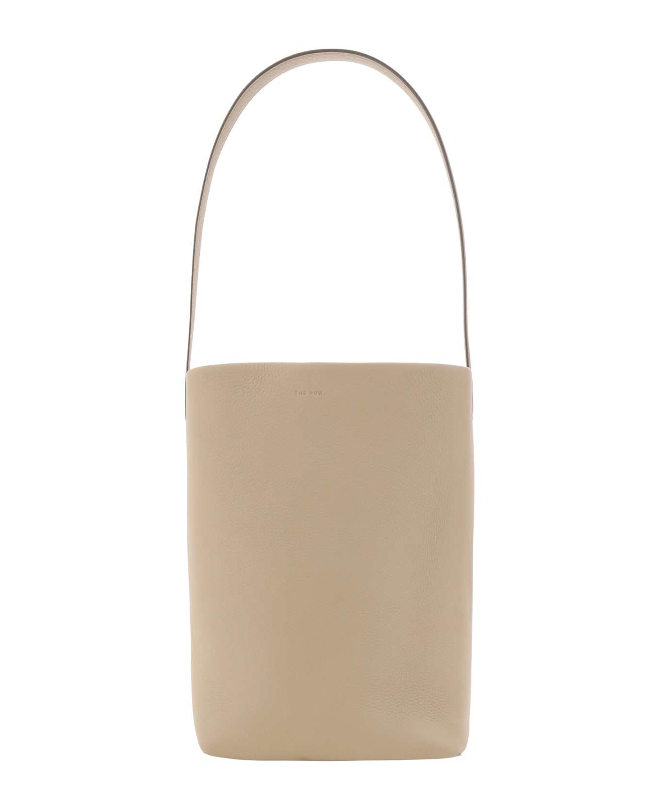 The park medium leather tote bag by the row is an elegant and refined accessory. crafted from grained leather, it features a single flat handle at the top for convenient carrying. the brand's iconic signature is press-stamped on the front, while the interior closure is by means of knotted ribbons, adding a sophisticated and functional touch. perfect for a minimalist and chic look.