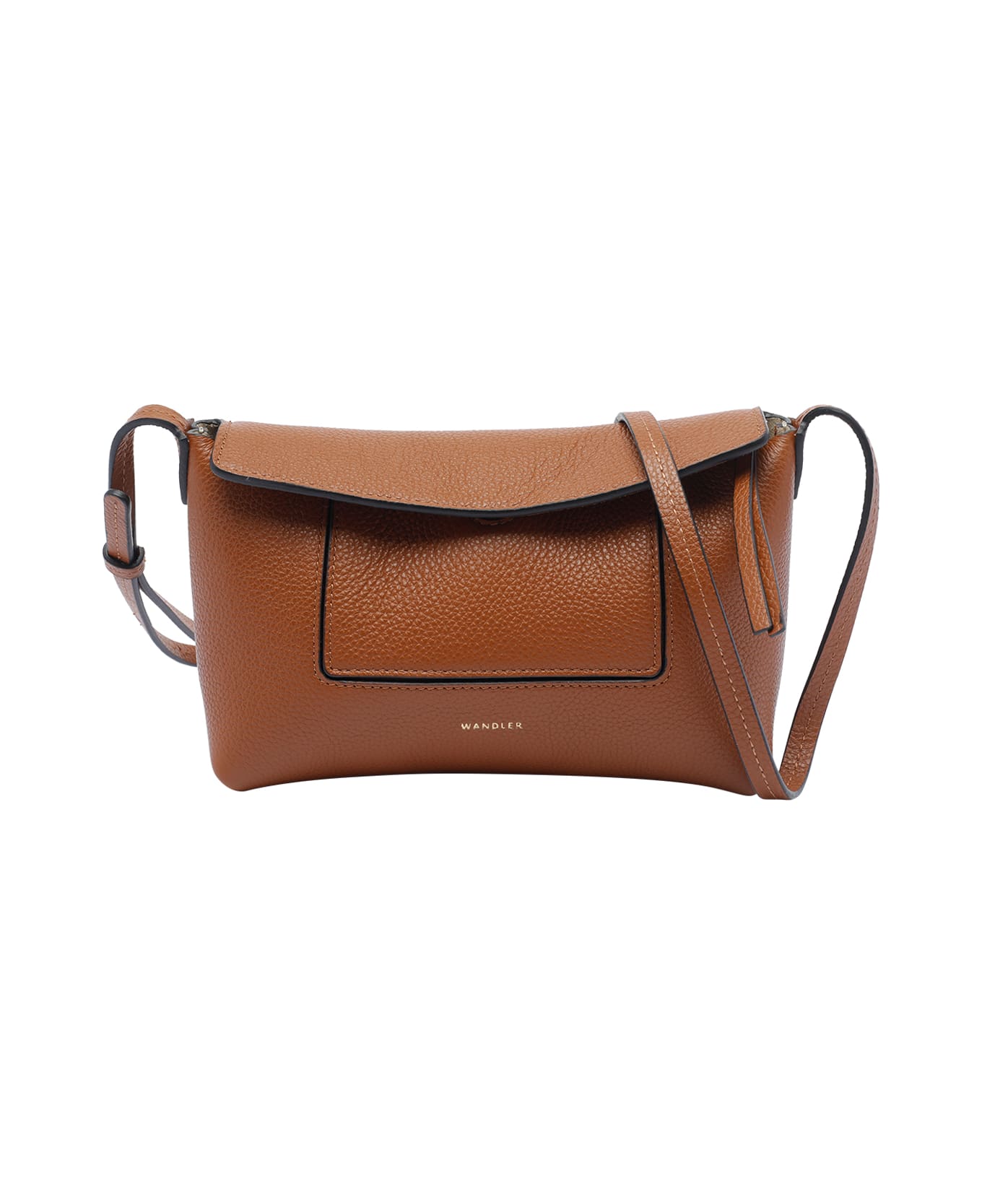 Wandler tan Penelope slouch mini bag, magnetic and zip closure, external open pocket, adjustable shoulder strap, logo