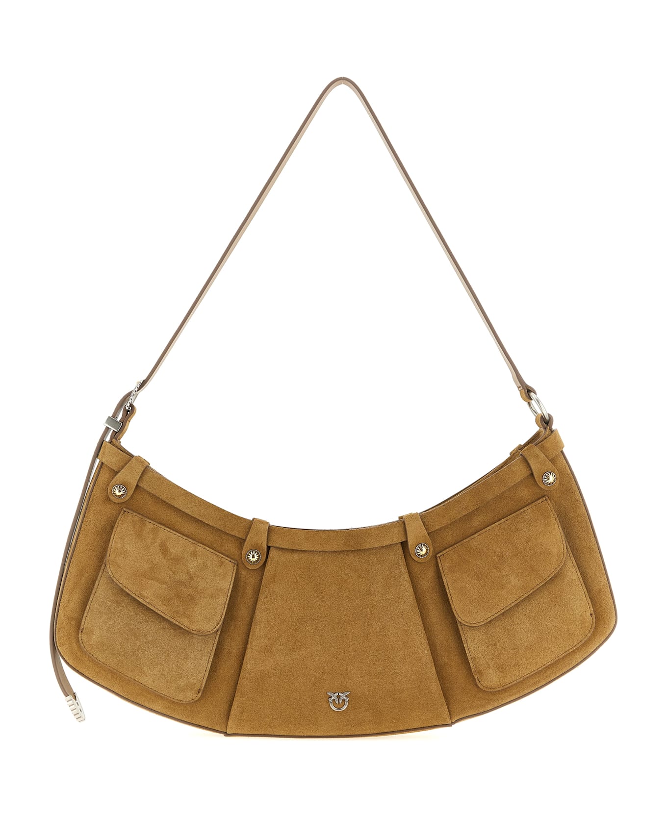 Pocket Body' large suede shoulder bag with flat design, arched and elongated hobo silhouette, country-inspired metal details, metal 'Love Birds Diamond Cut' logo and front pockets, top zip closure, cotton drill lining, adjustable shoulder strap.