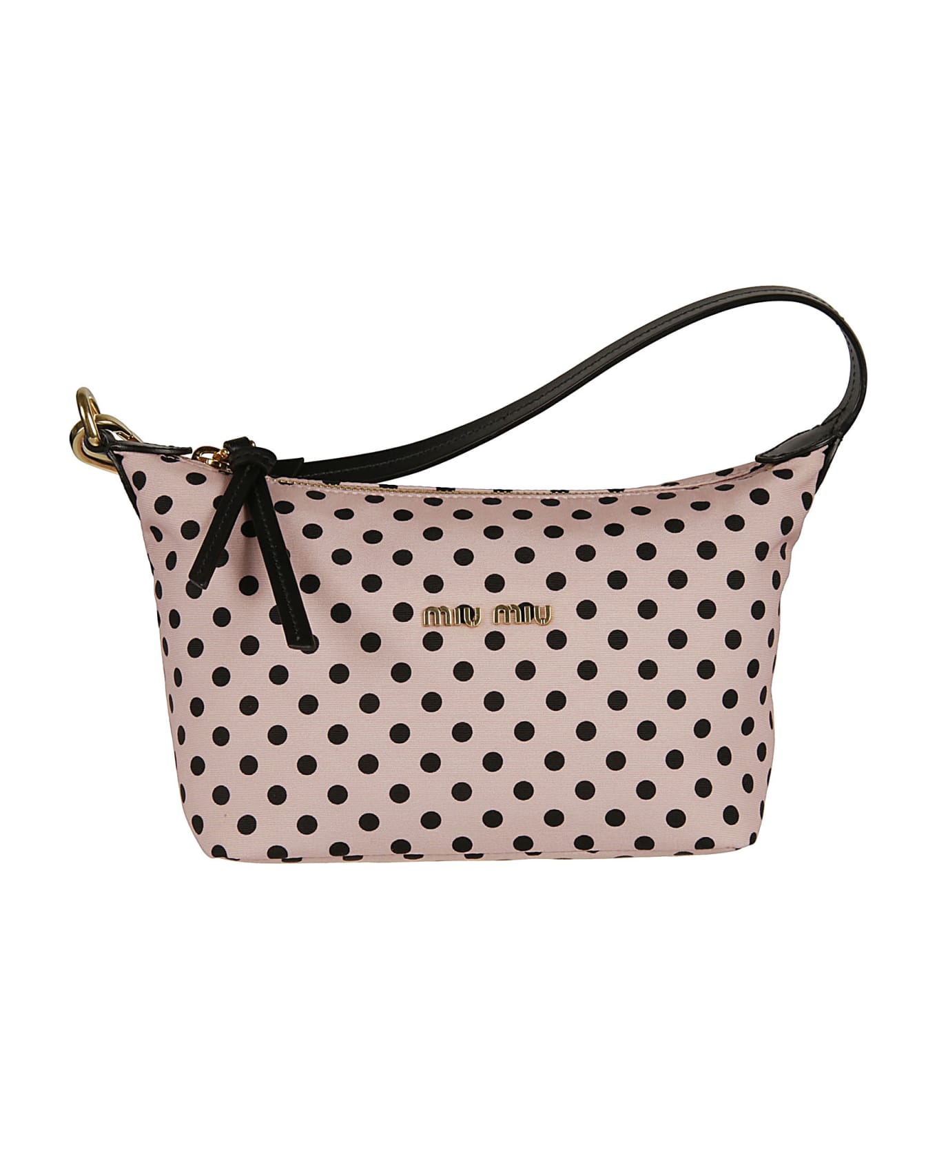 Polka Dot Logo Plaque Top Zip Shoulder Bag from Miu Miu