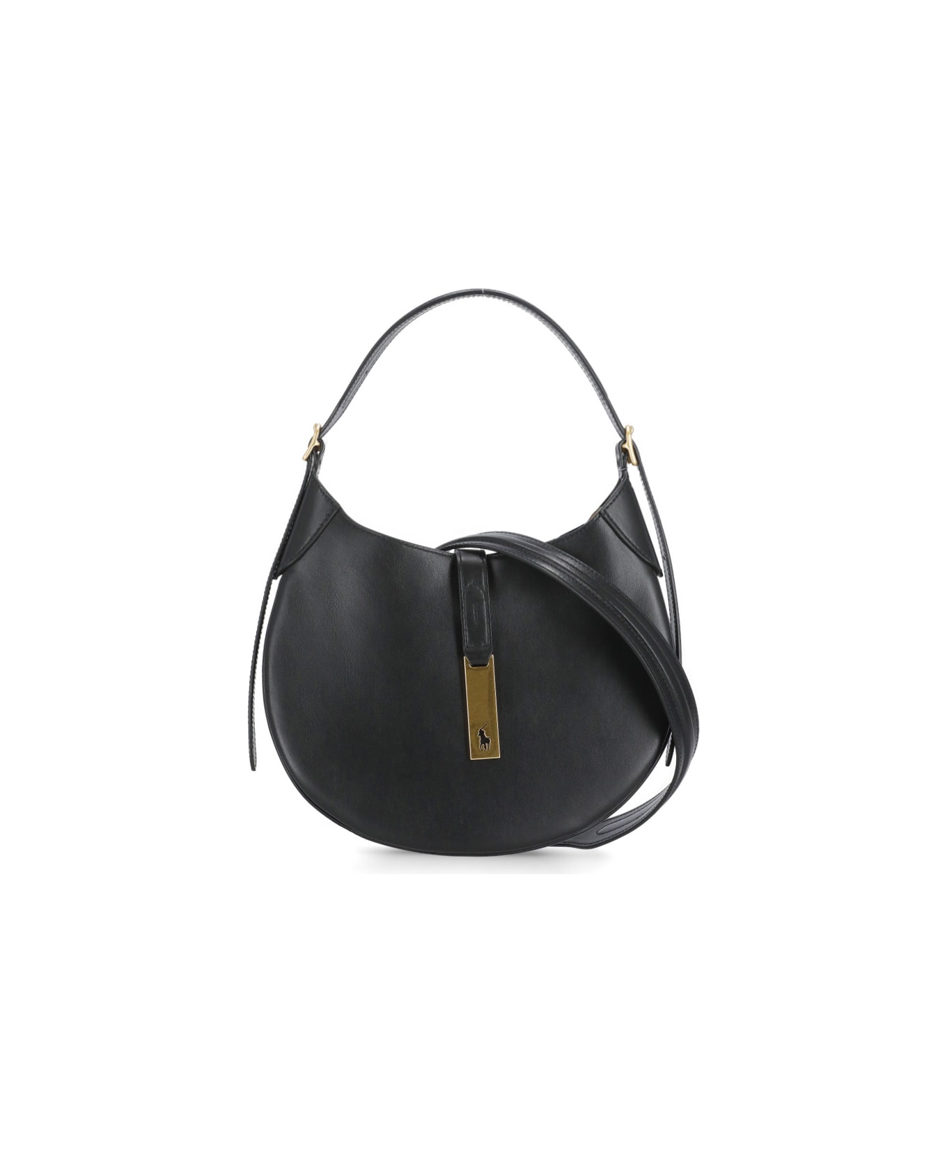 - Black Ralph Lauren leather shoulder bag for women - One main compartment with magnetic button - One adjustable shoulder strap - One internal pocket - Metal Polo ID logo detail