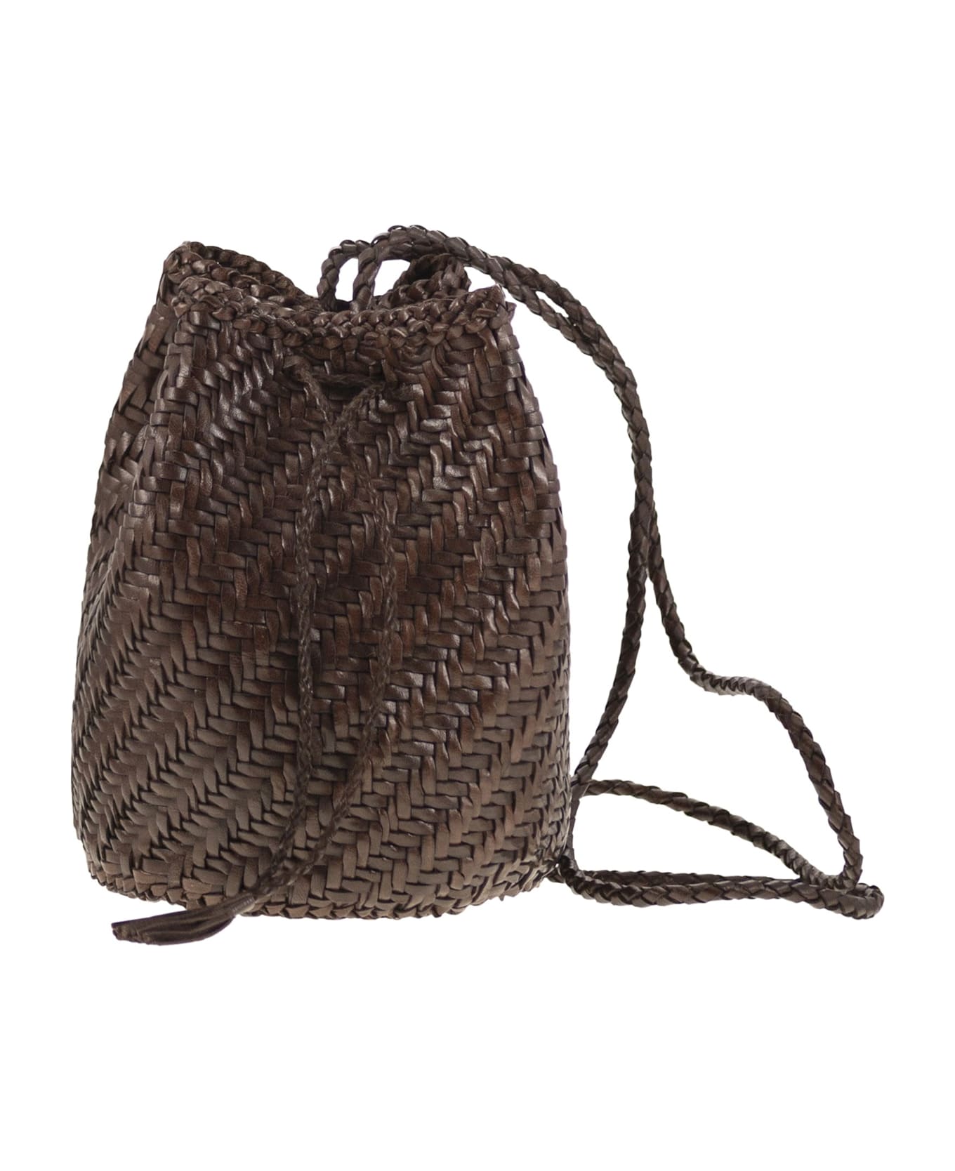 Handcrafted from soft goatskin, this compact, unlined shoulder bag features a long shoulder strap and a button closure. The fine leather threads are intricately woven, creating a fabric that is both delicate and reliable. Wear it over the shoulder for a no-frills boho-chic look. A pendant in the shape of an antiqued St Christopher medal, in homage to the patron saint of travellers, is hand-sewn inside each Dragon Diffusion bag: the brand's seal of authenticity. - Shoulder strap - Buffalo calfskin, - Unlined DESIGNER ID: 8838 DK BROWN