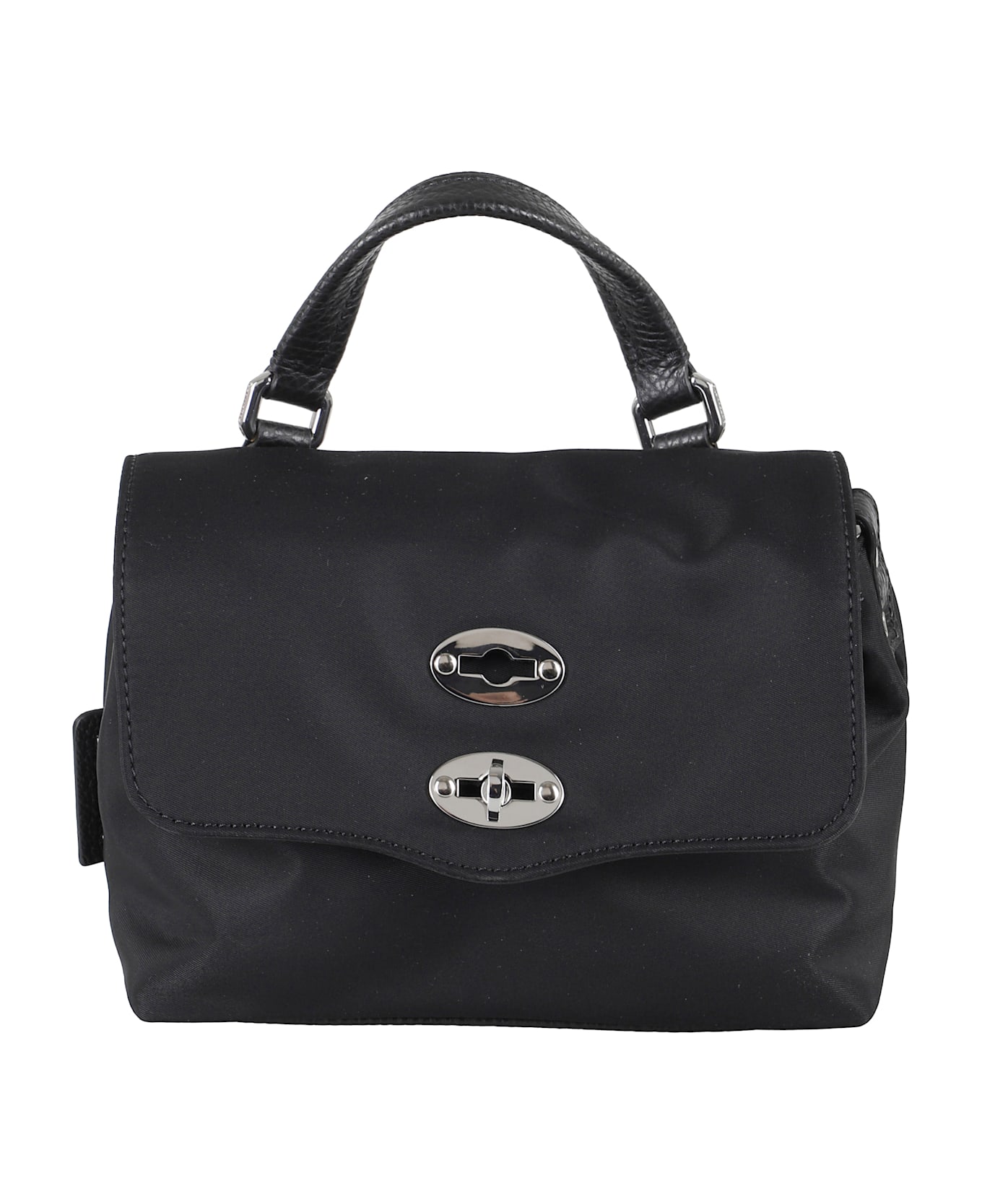 Tokyo Baby Postina bag - Zanellato - Black color - Made of nylon - Double internal compartment - Leather top handle - Adjustable and removable leather shoulder strap - Double swivel flap closure - Dimensions: 19 x 14 x 10 cm.